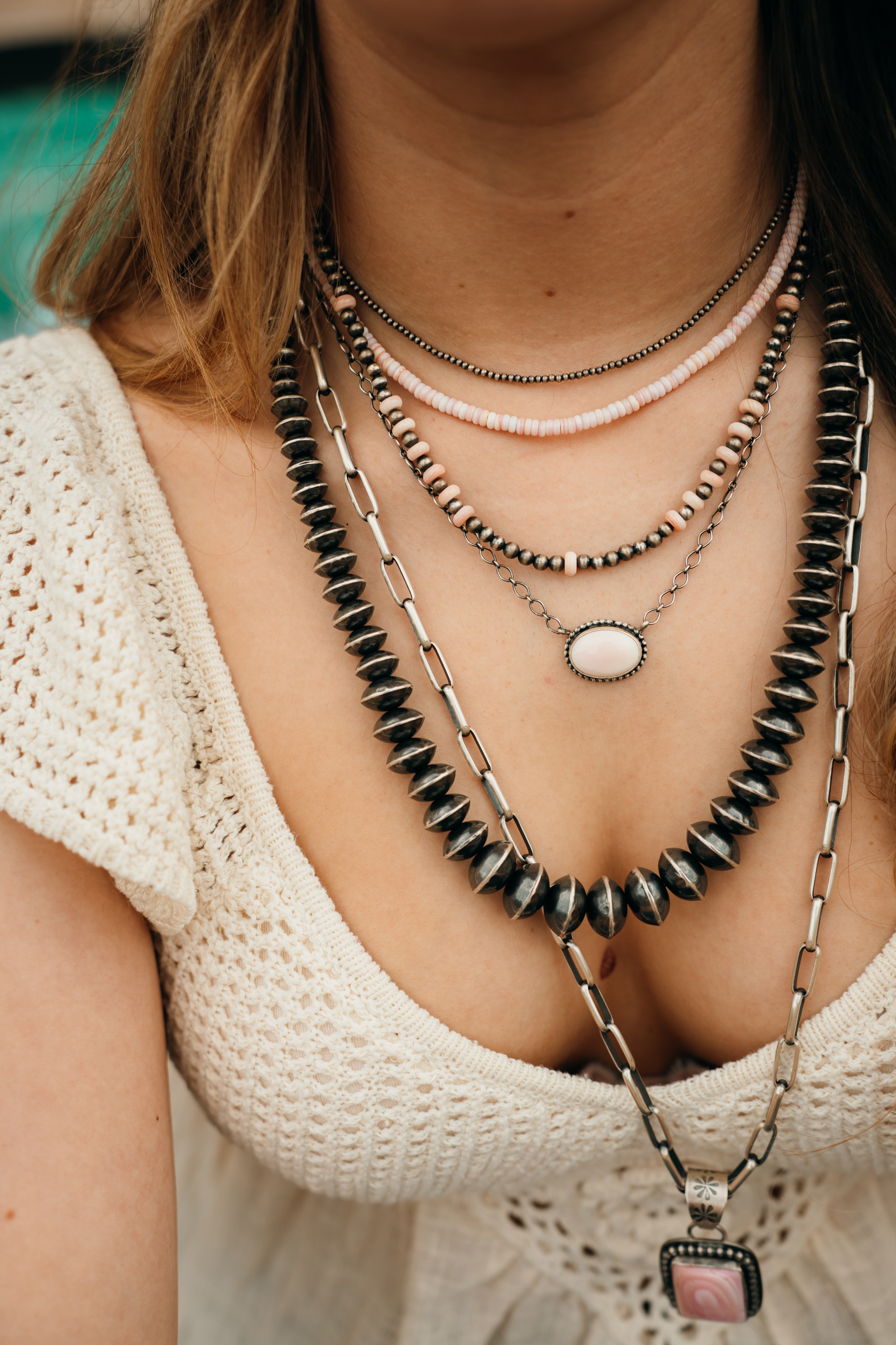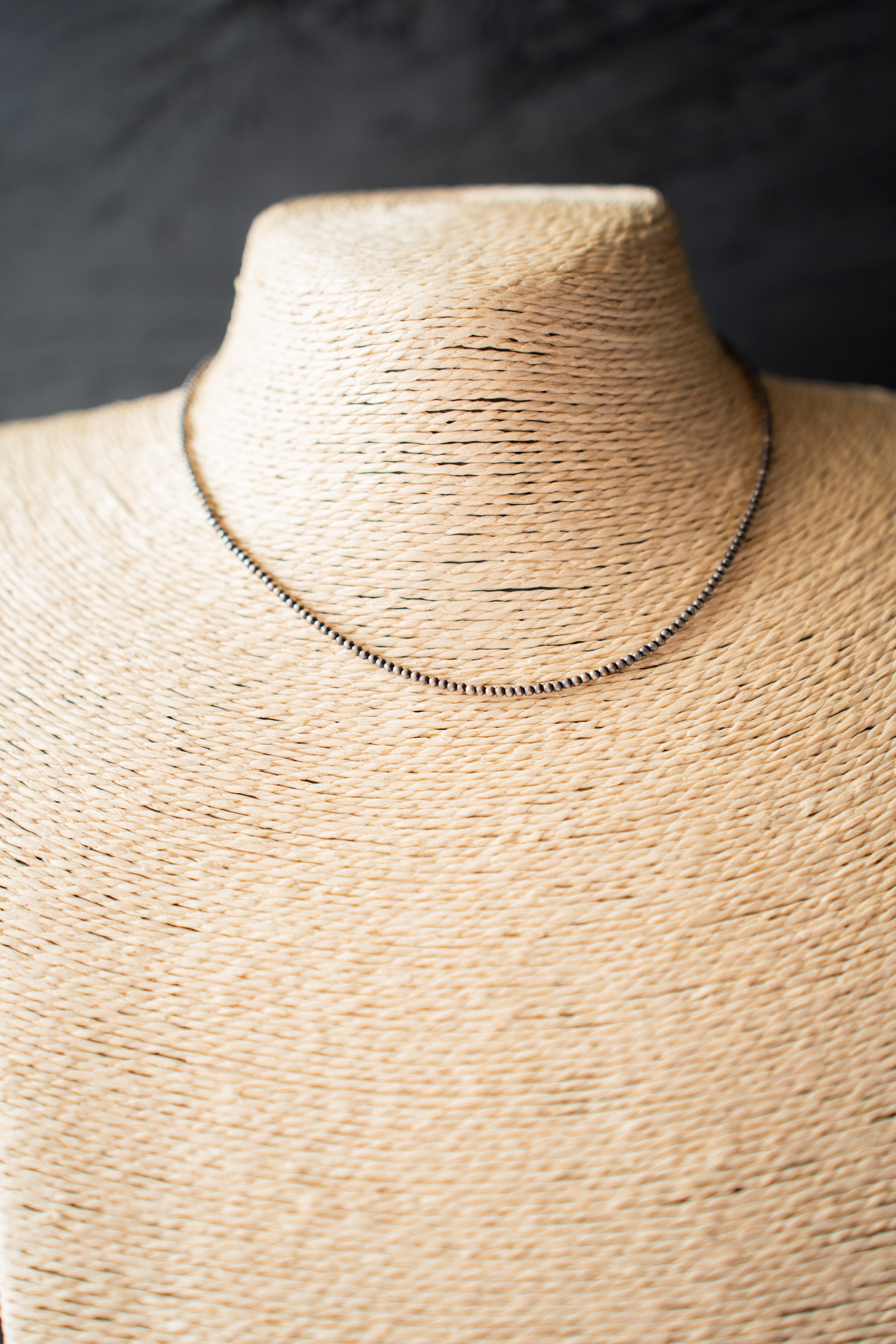 2mm Navajo Pearl Necklace. 14-16" in length. First necklace down in stack.