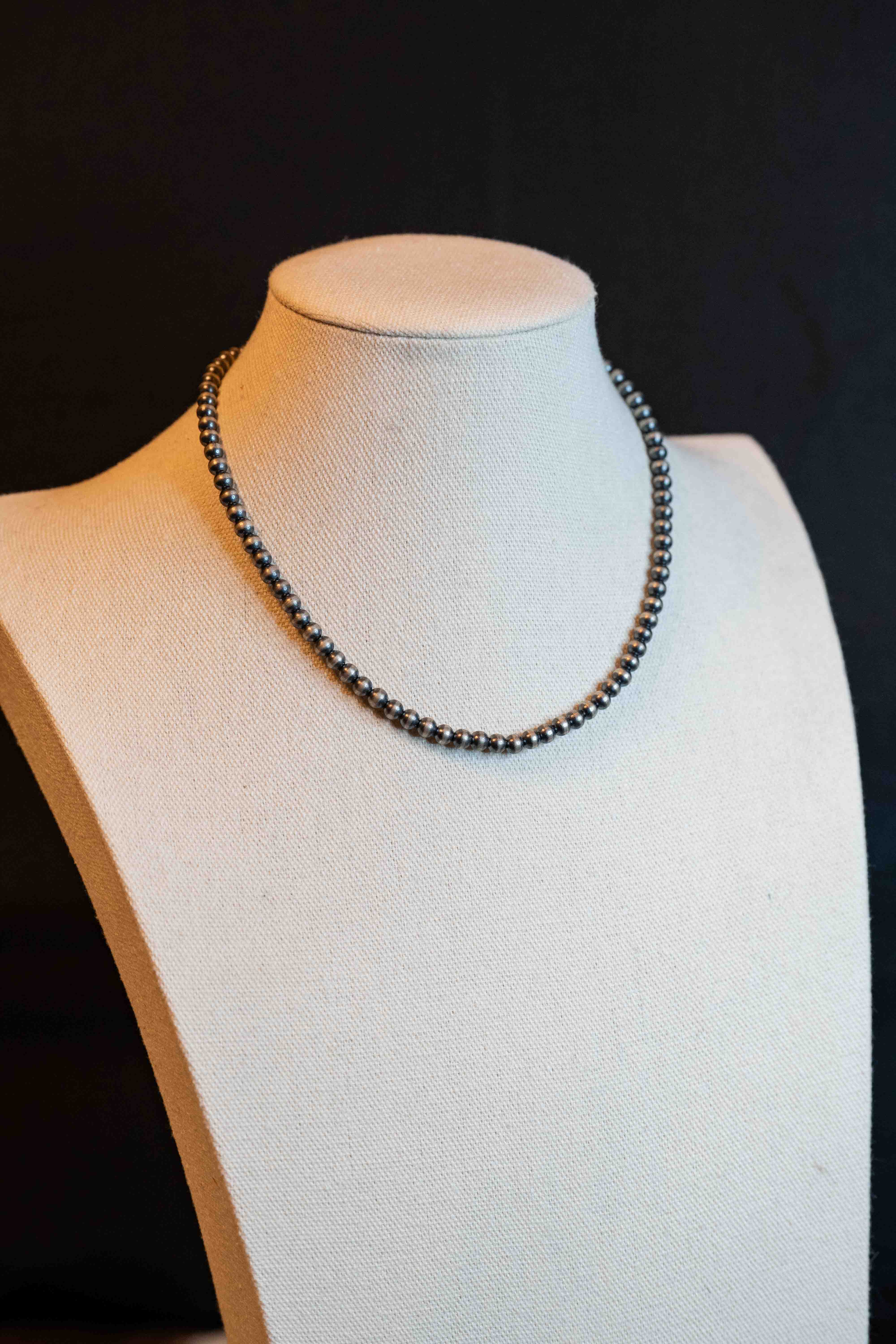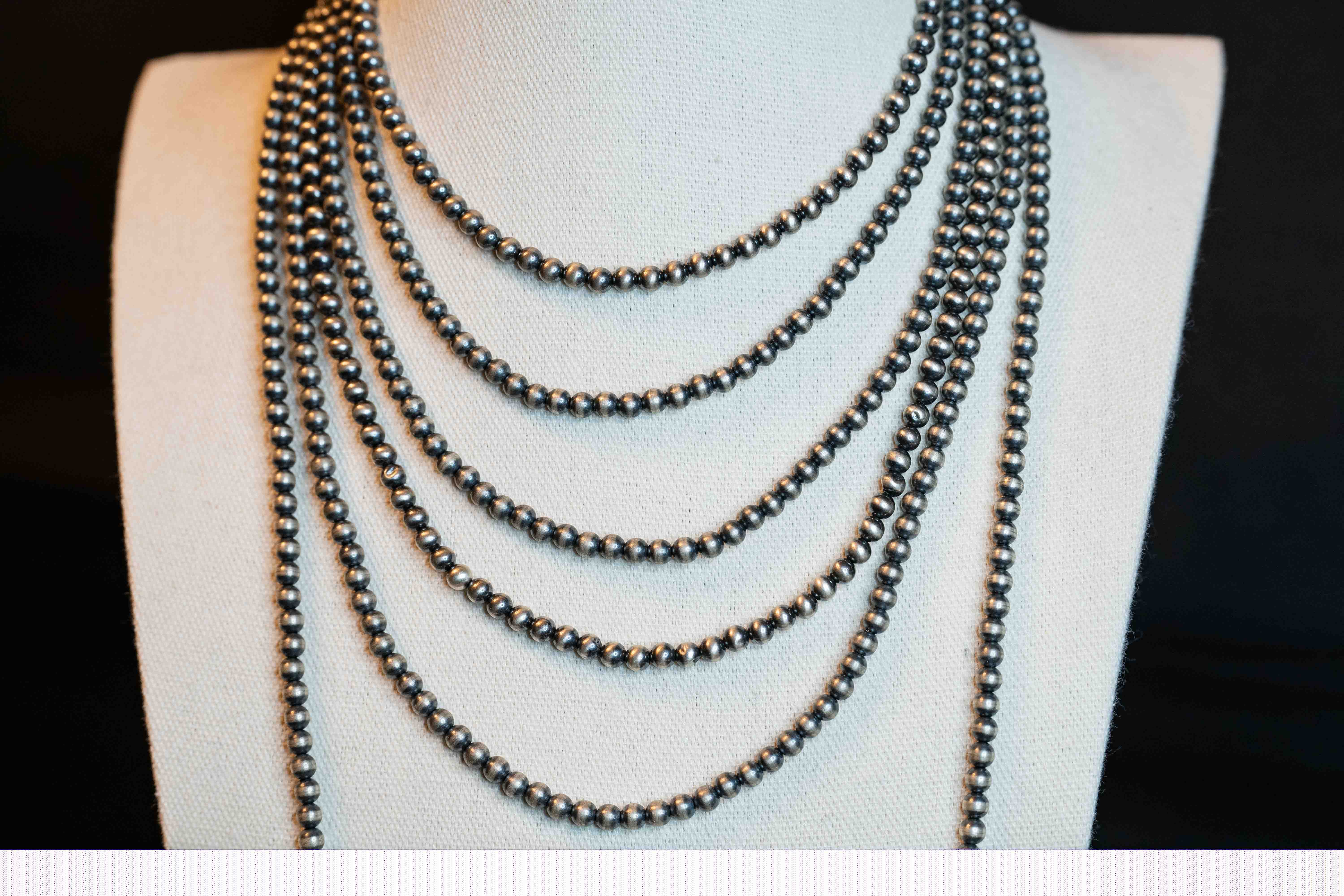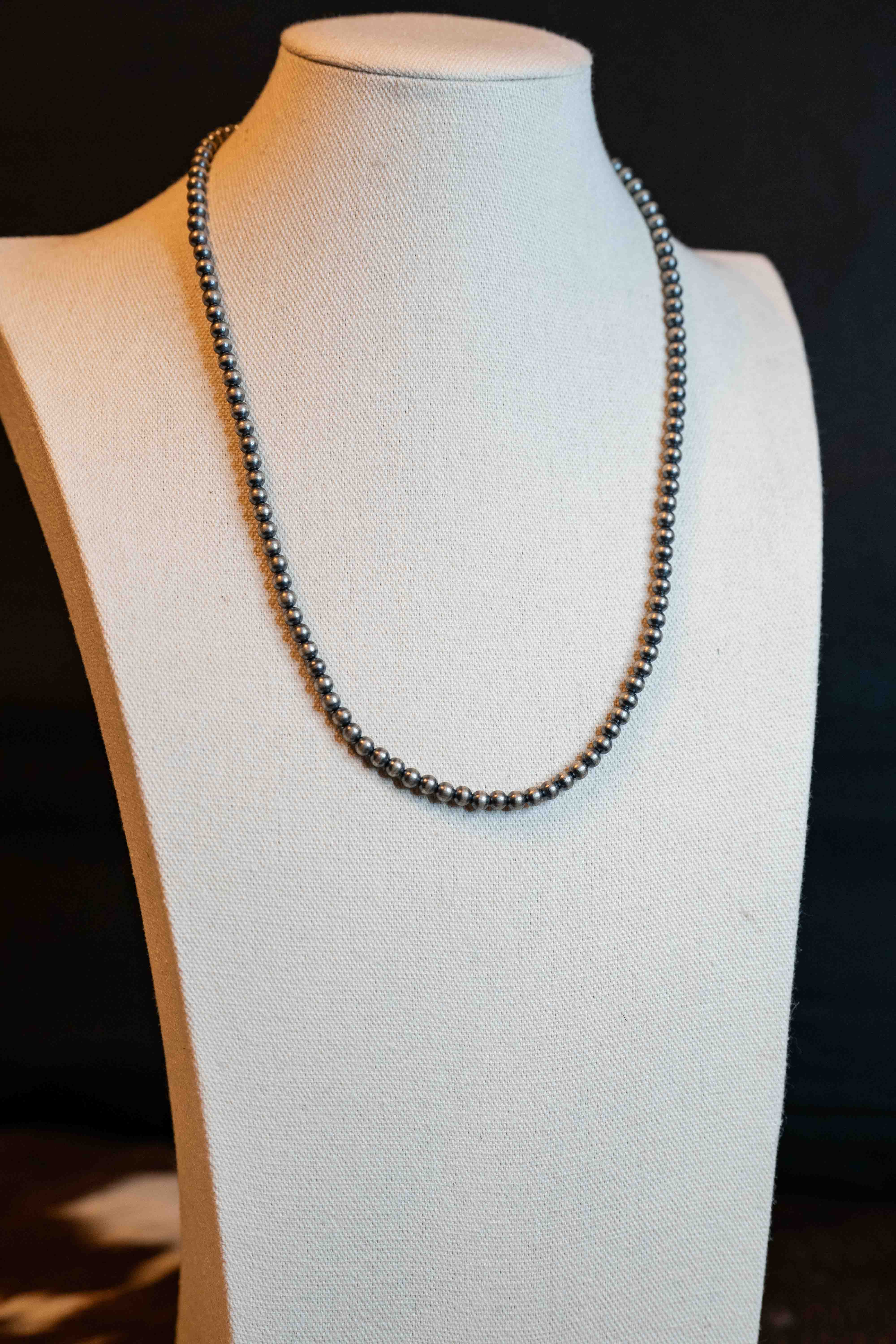 This necklace is made of beautiful 5mm handmade Navajo Pearls. Sterling silver and made in various lengths.