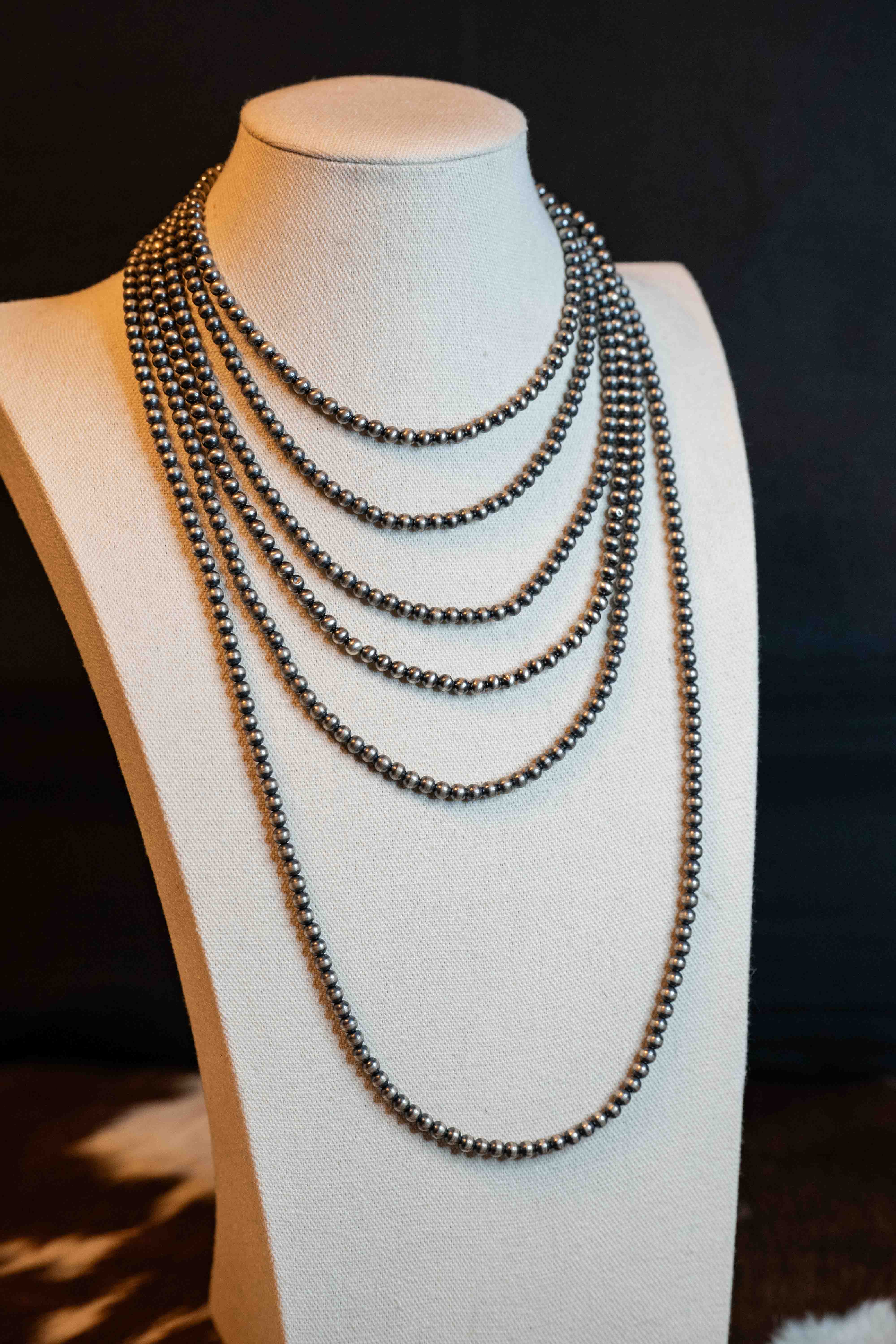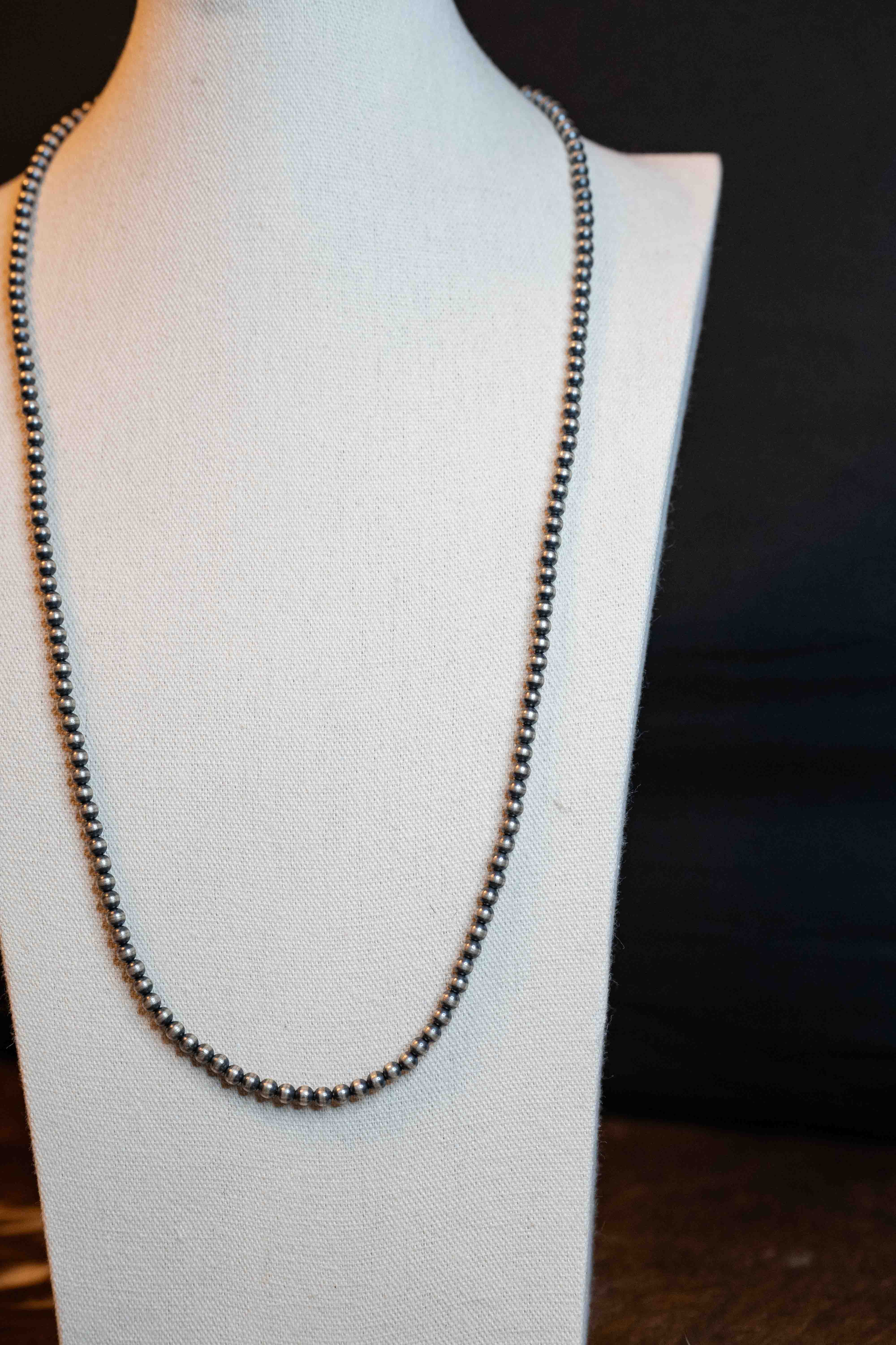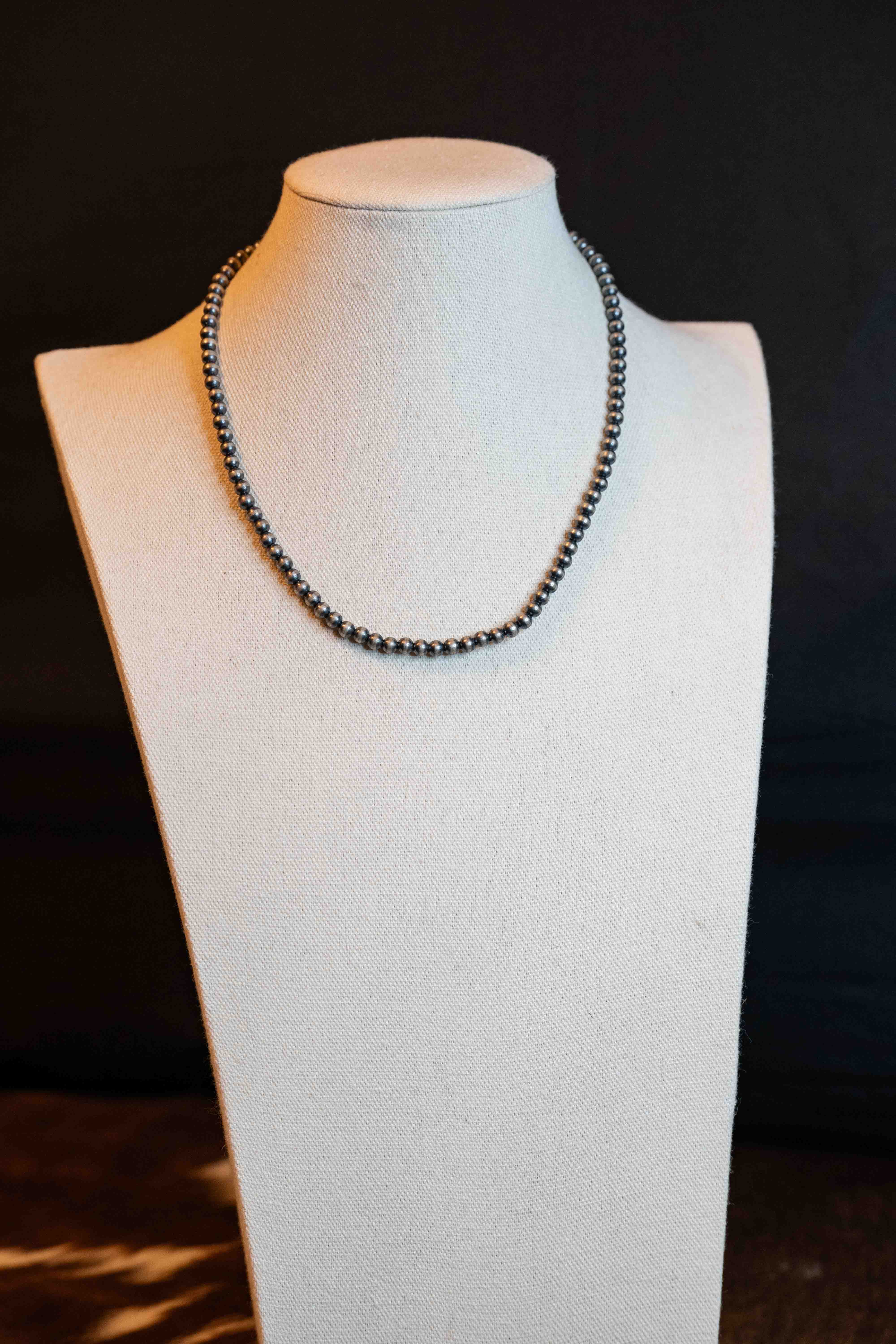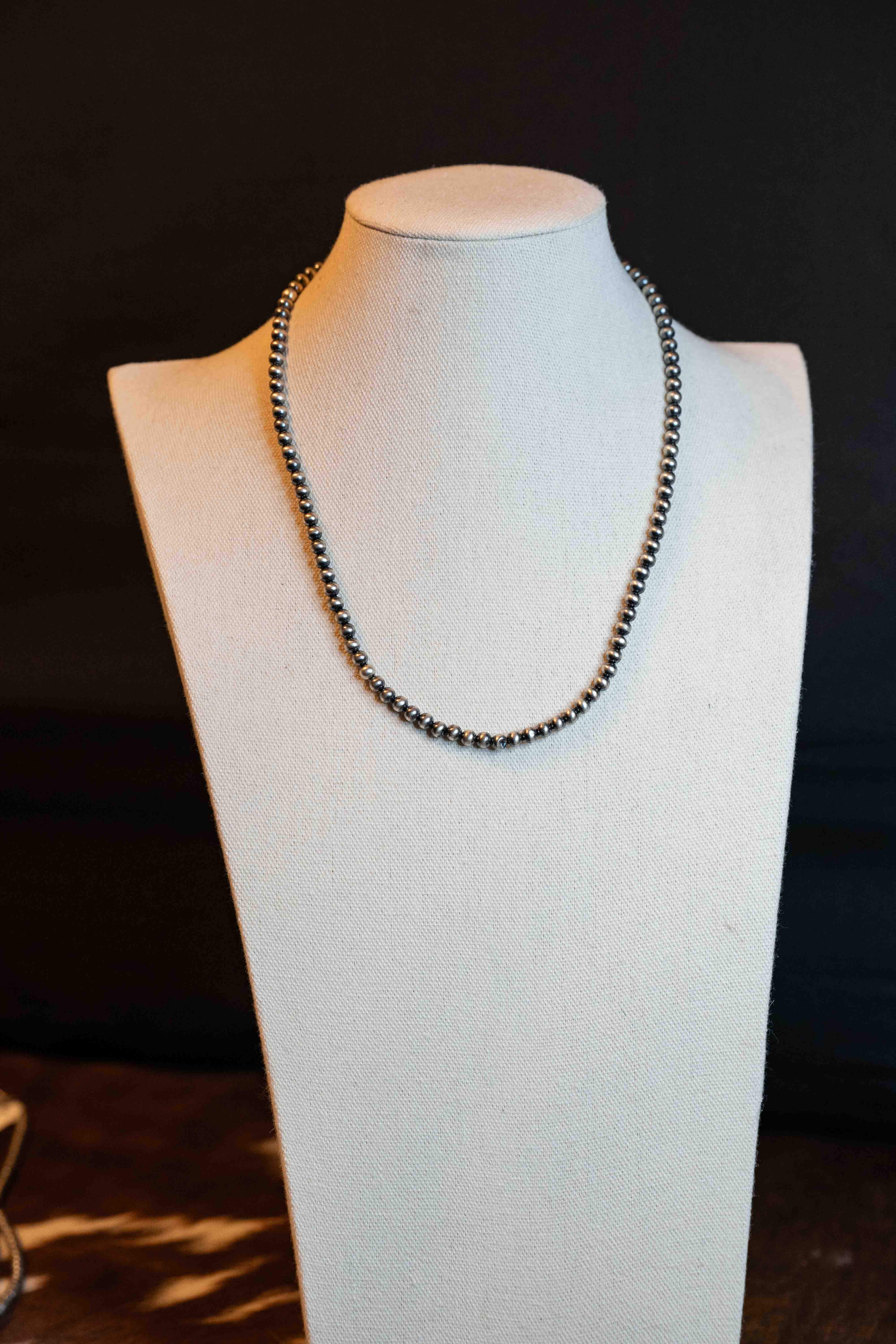 This necklace is made of beautiful 5mm handmade Navajo Pearls. Sterling silver and made in various lengths.