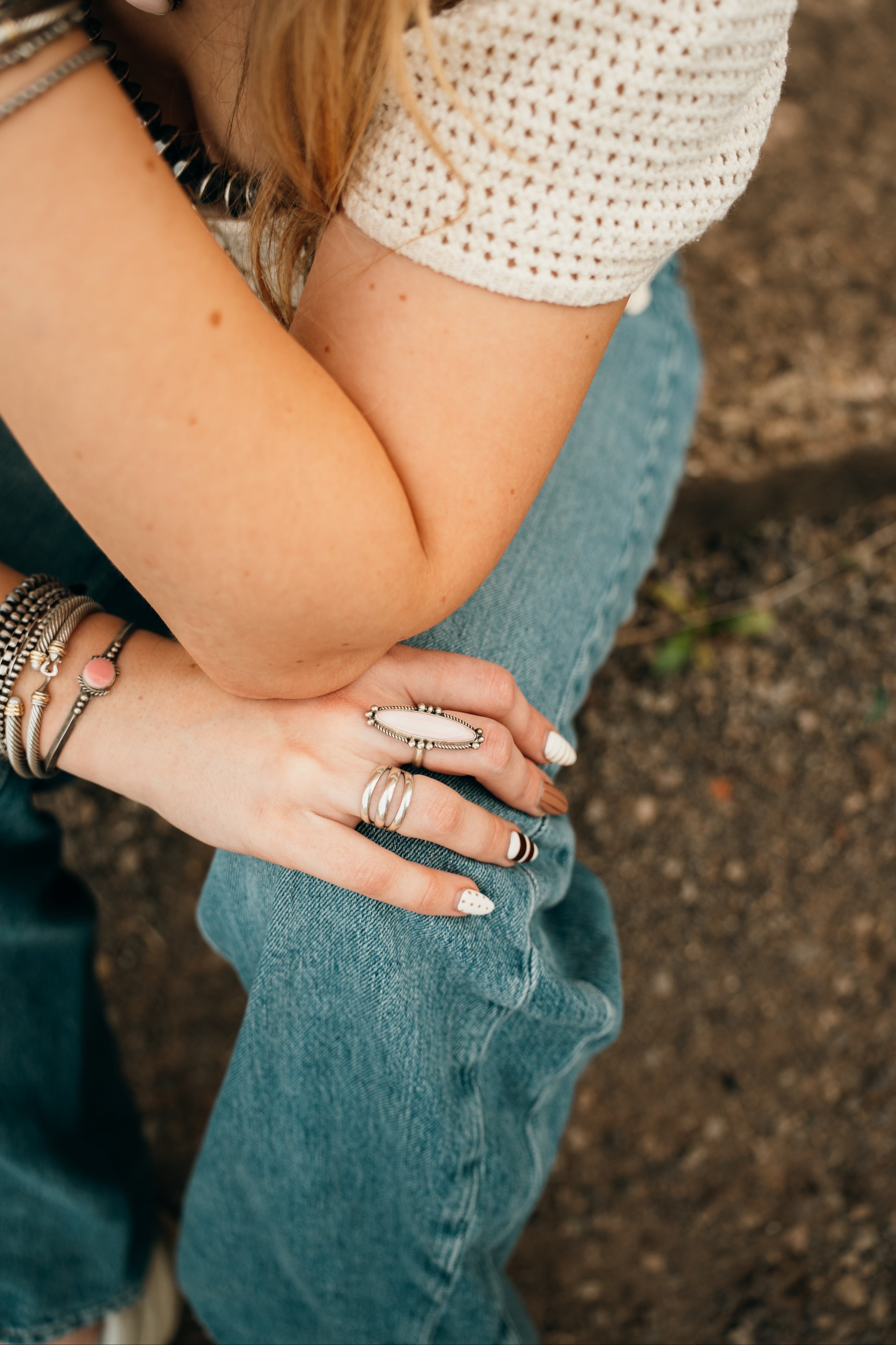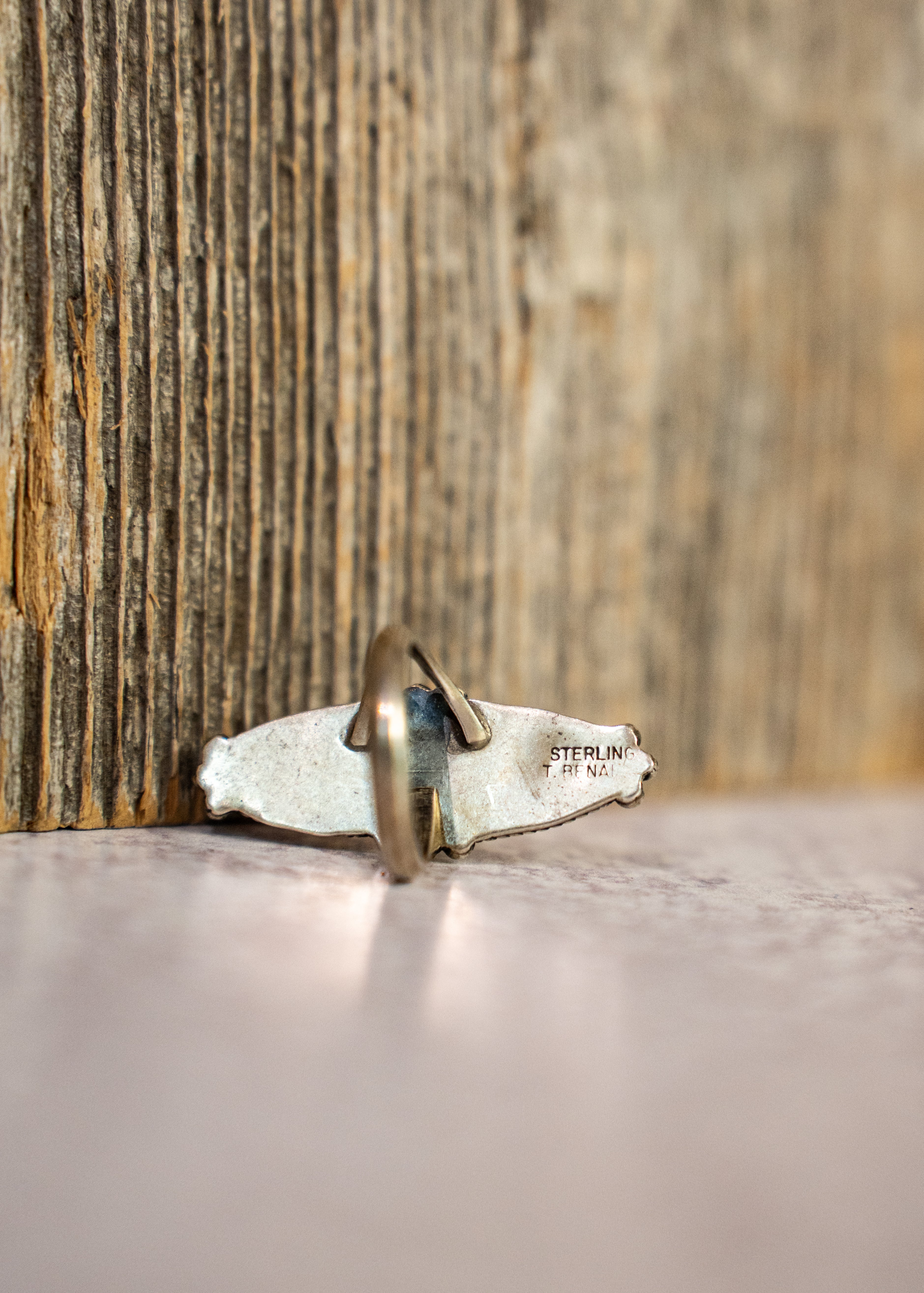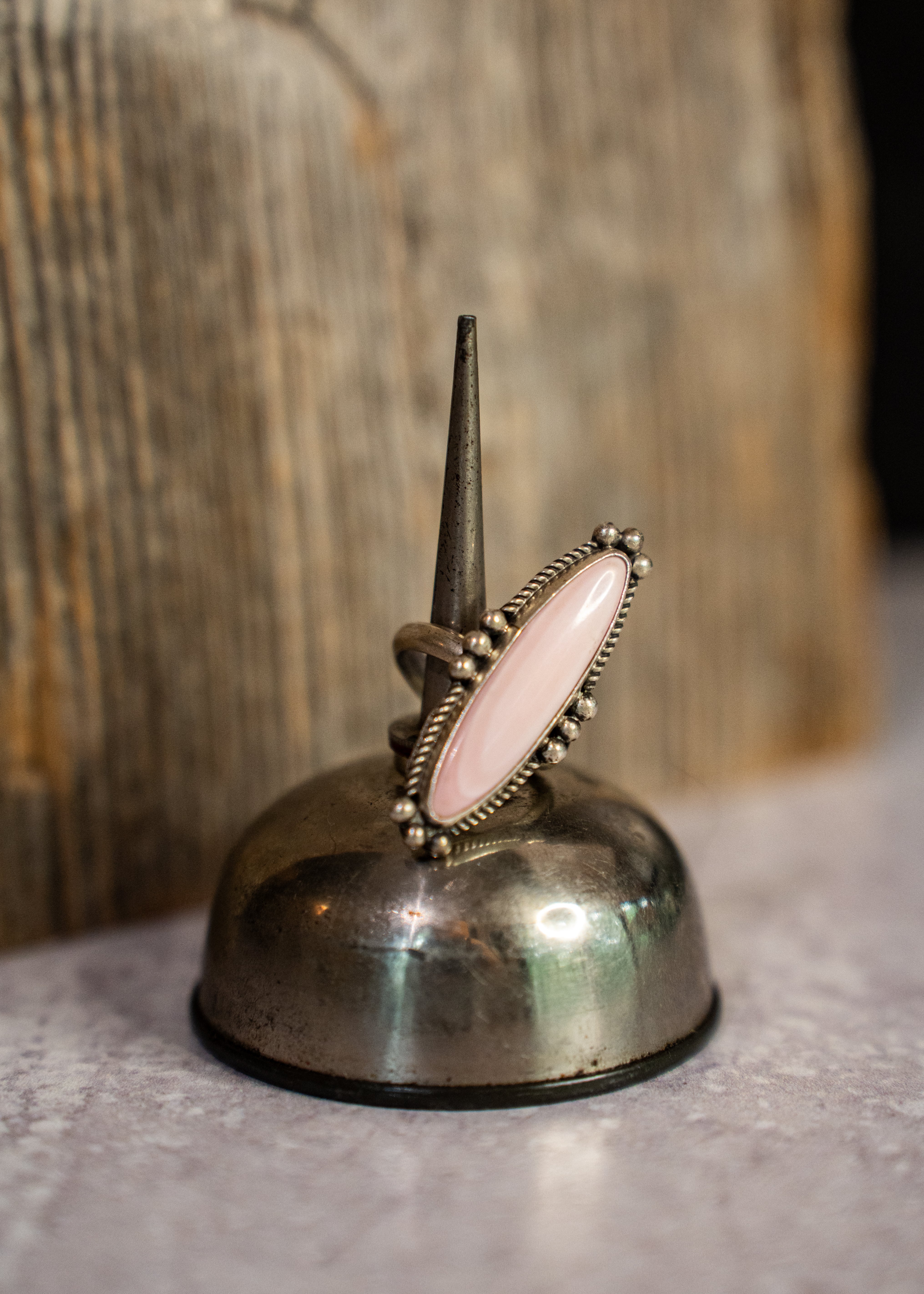 Sterling Silver and Queen Pink Conch Ring. Stamped sterling silver and by designer.