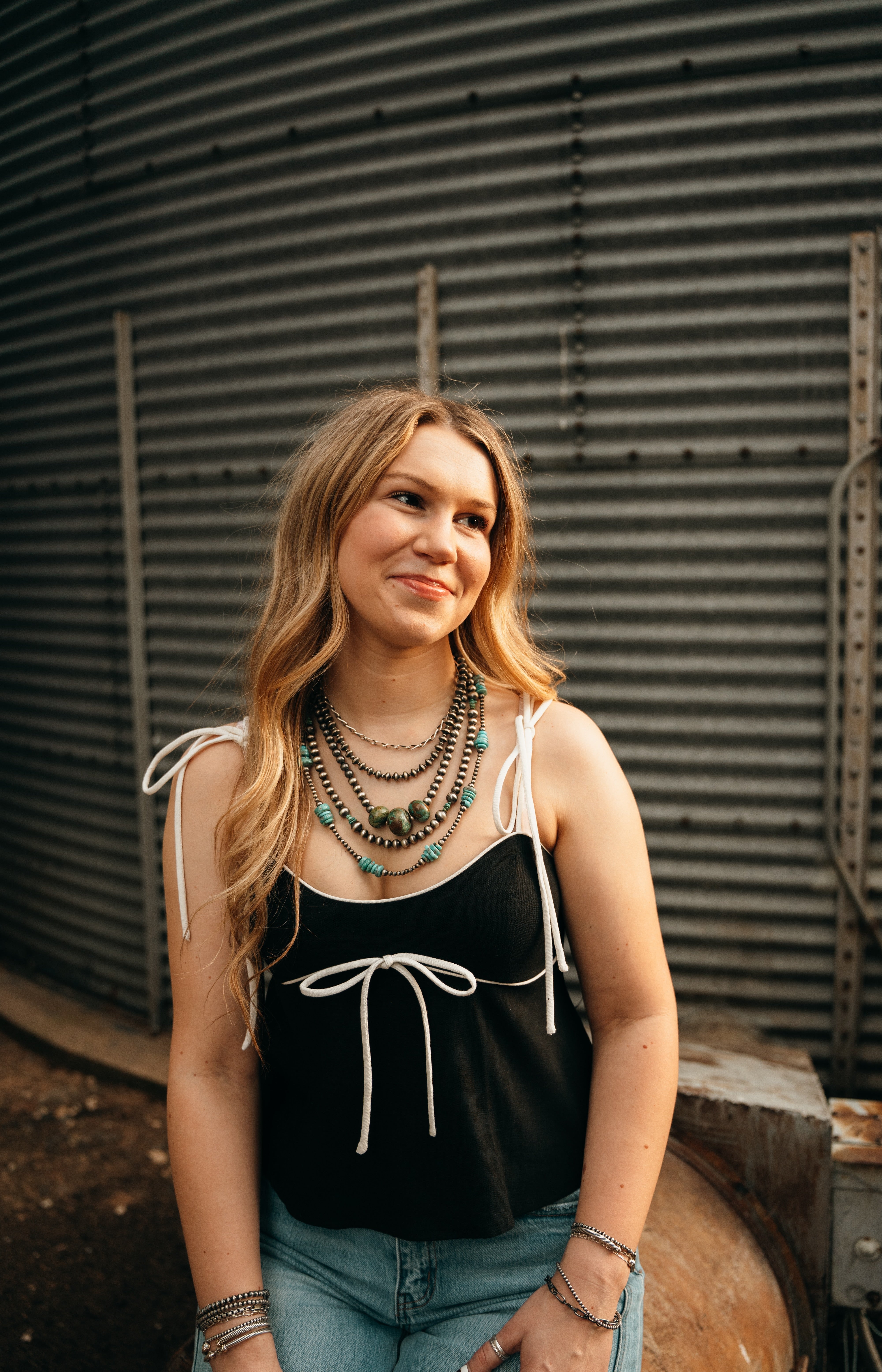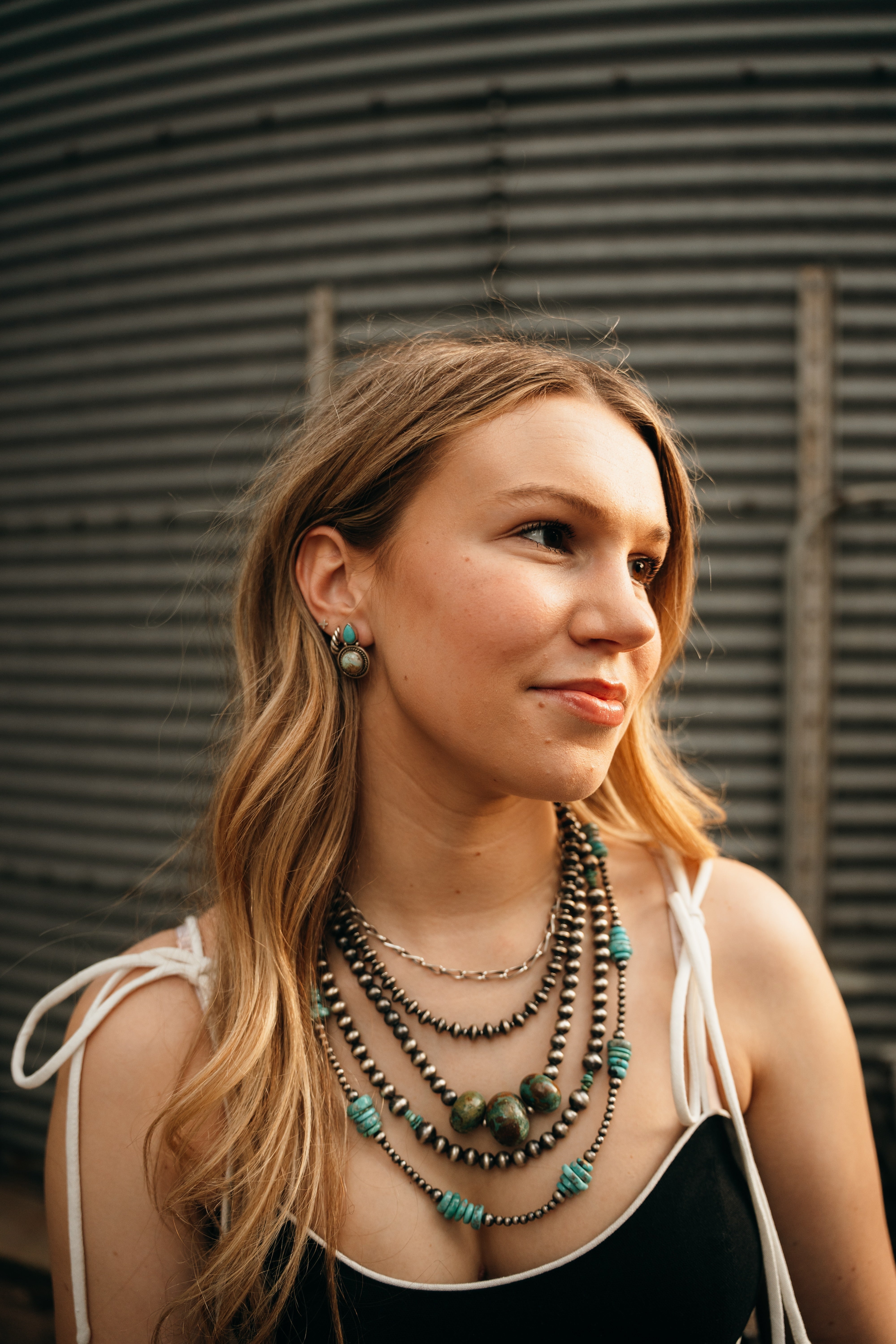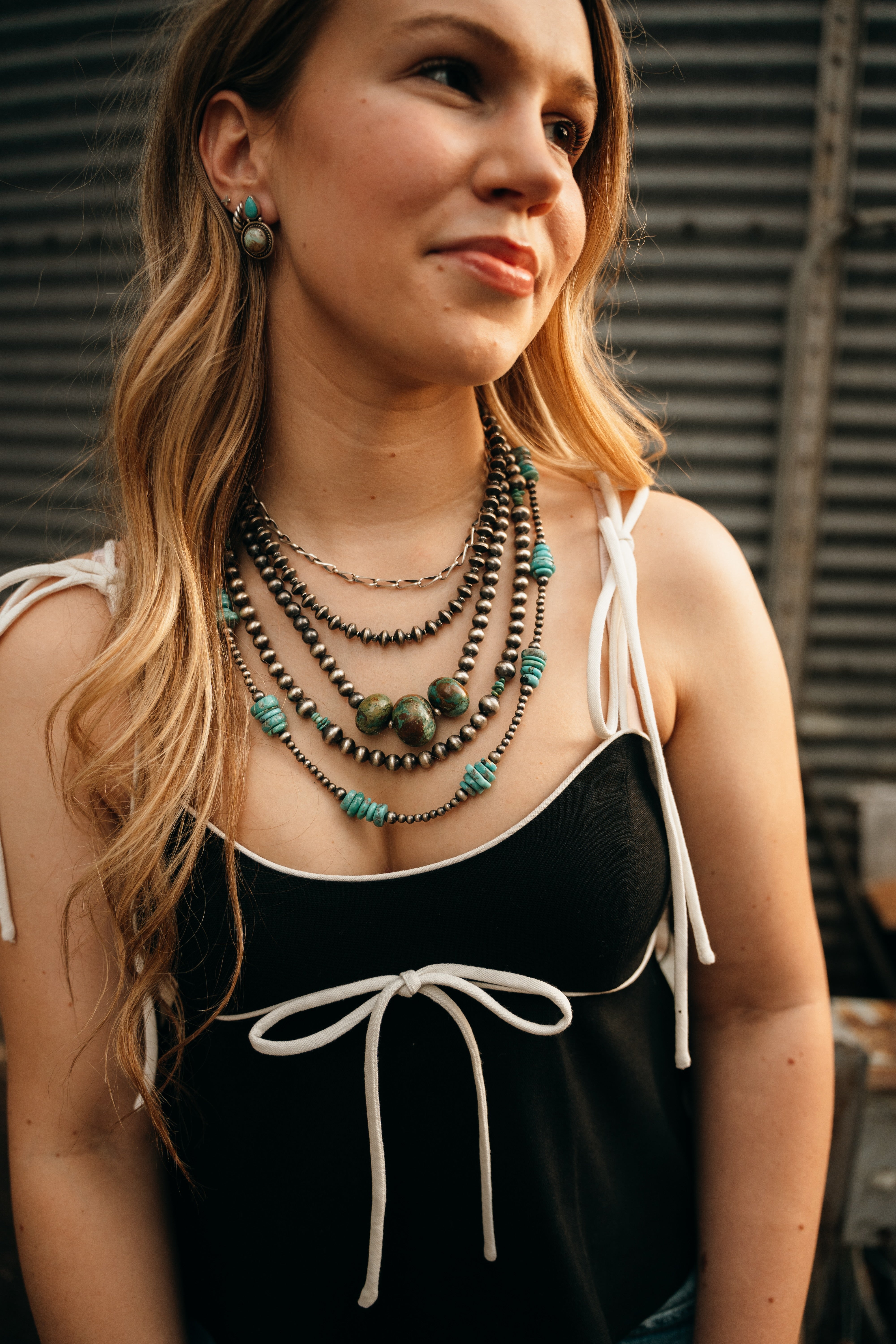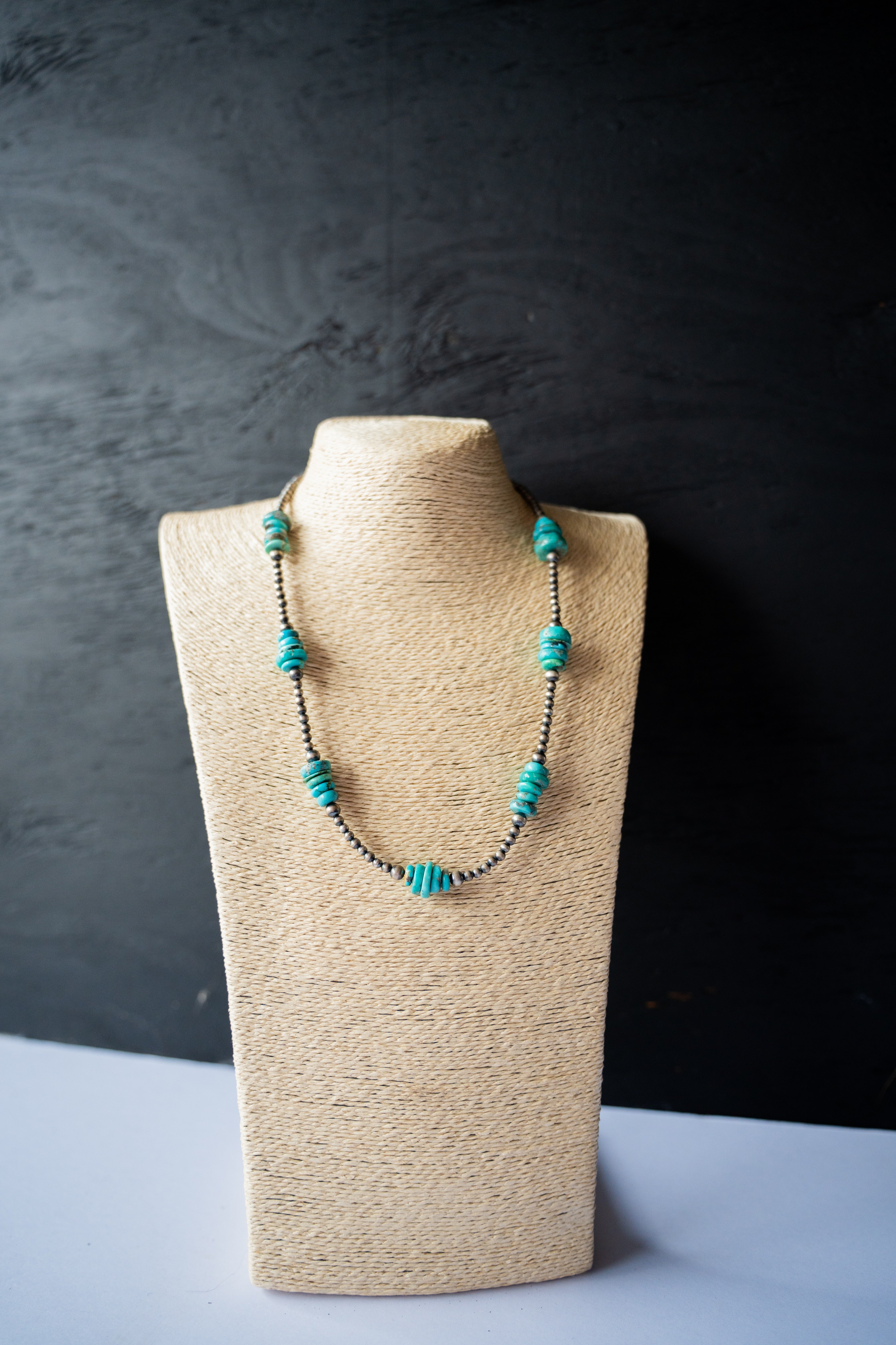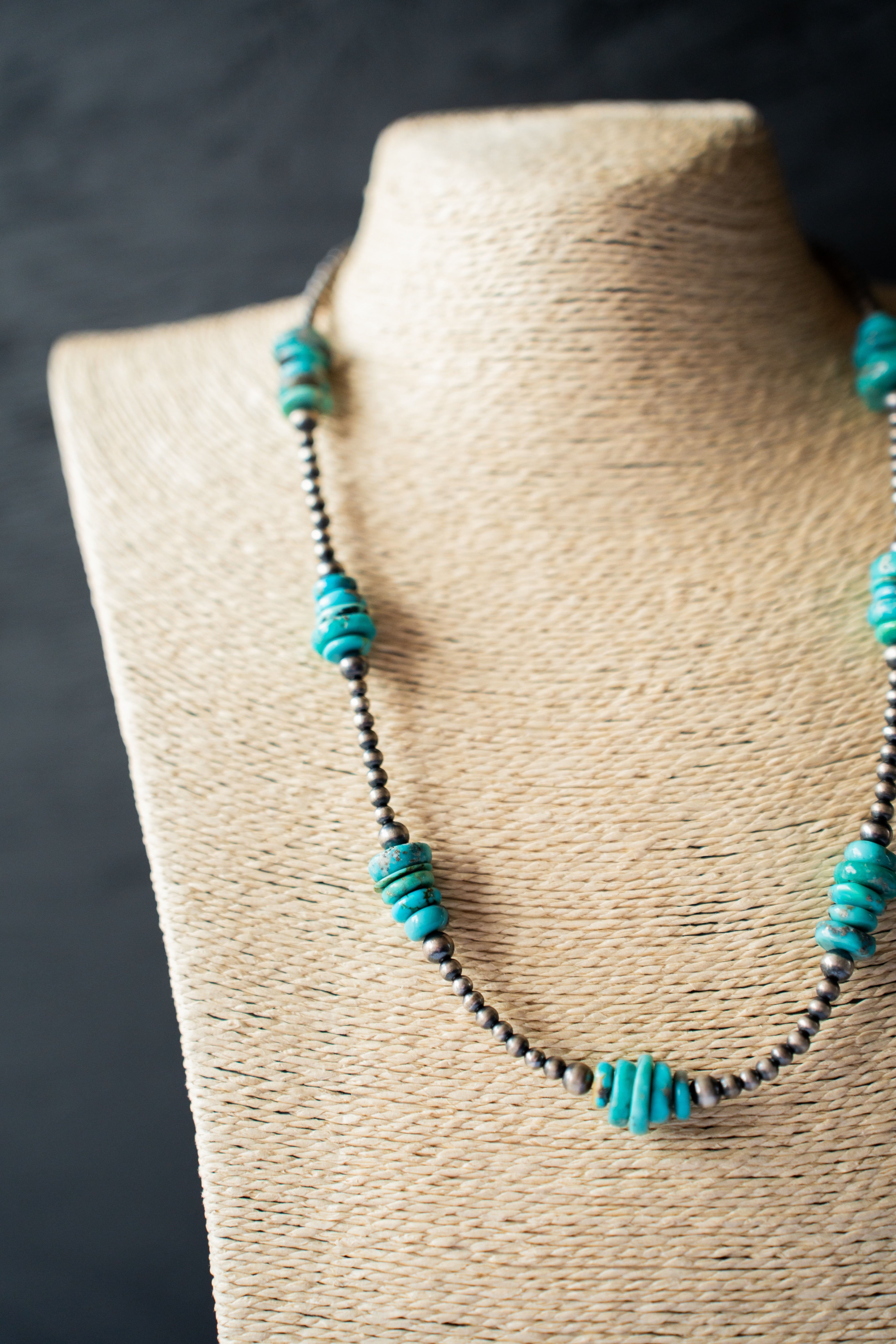 Navajo Pearl and turquoise bead necklace. Measures 23-26" in length.