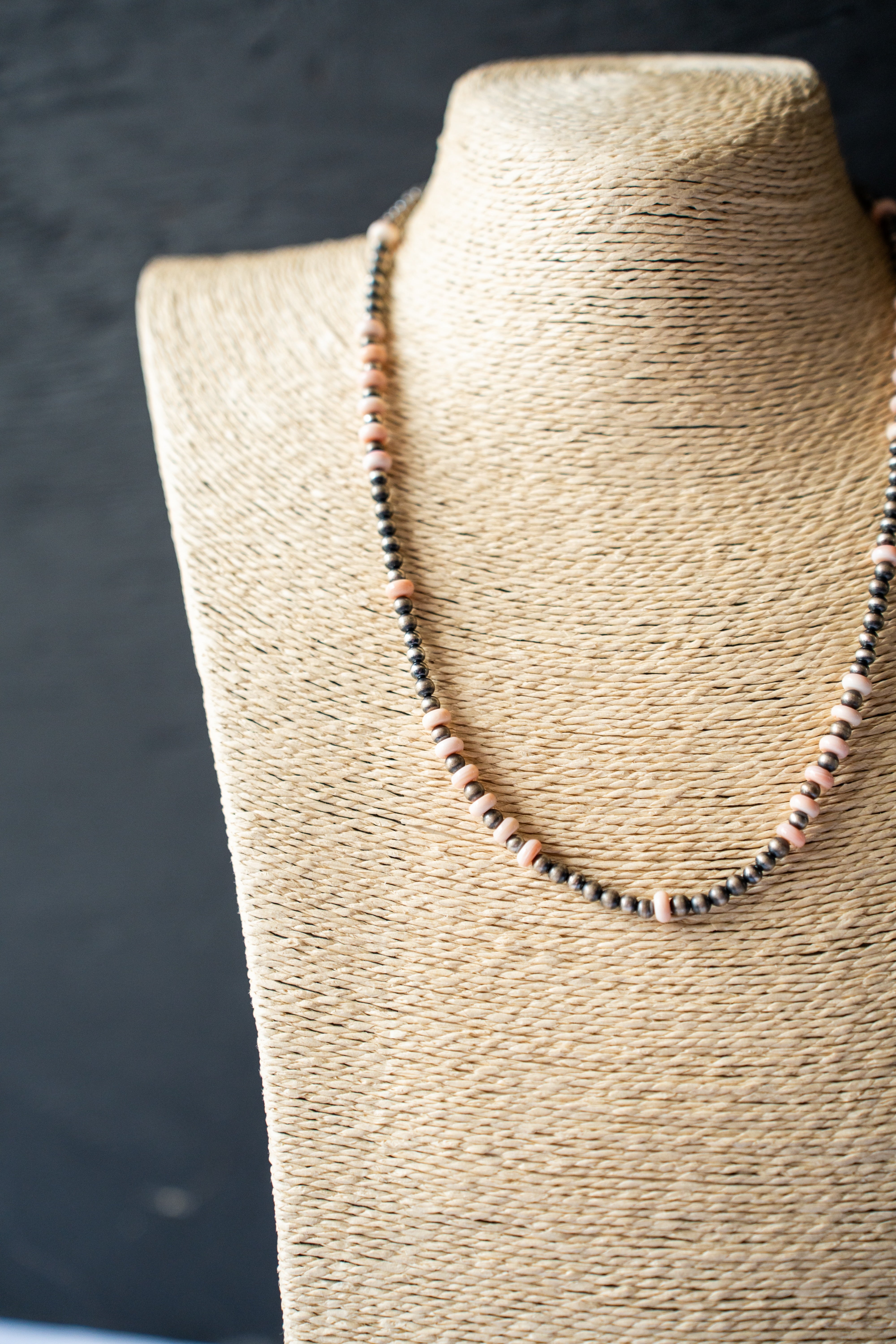 Navajo Pearl and pinch conch bead necklace. 18-21" in length. Third necklace down in stack pictures.