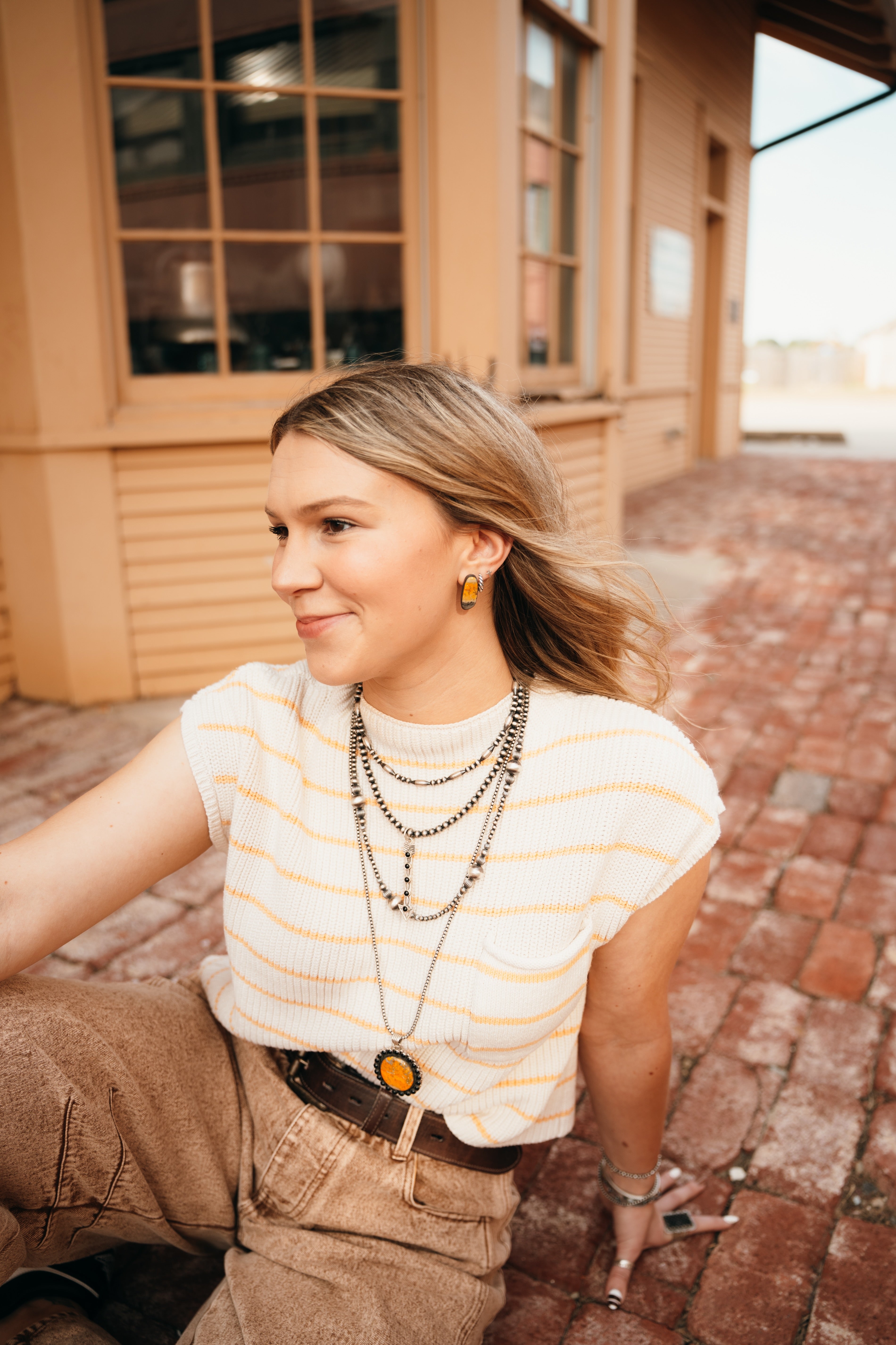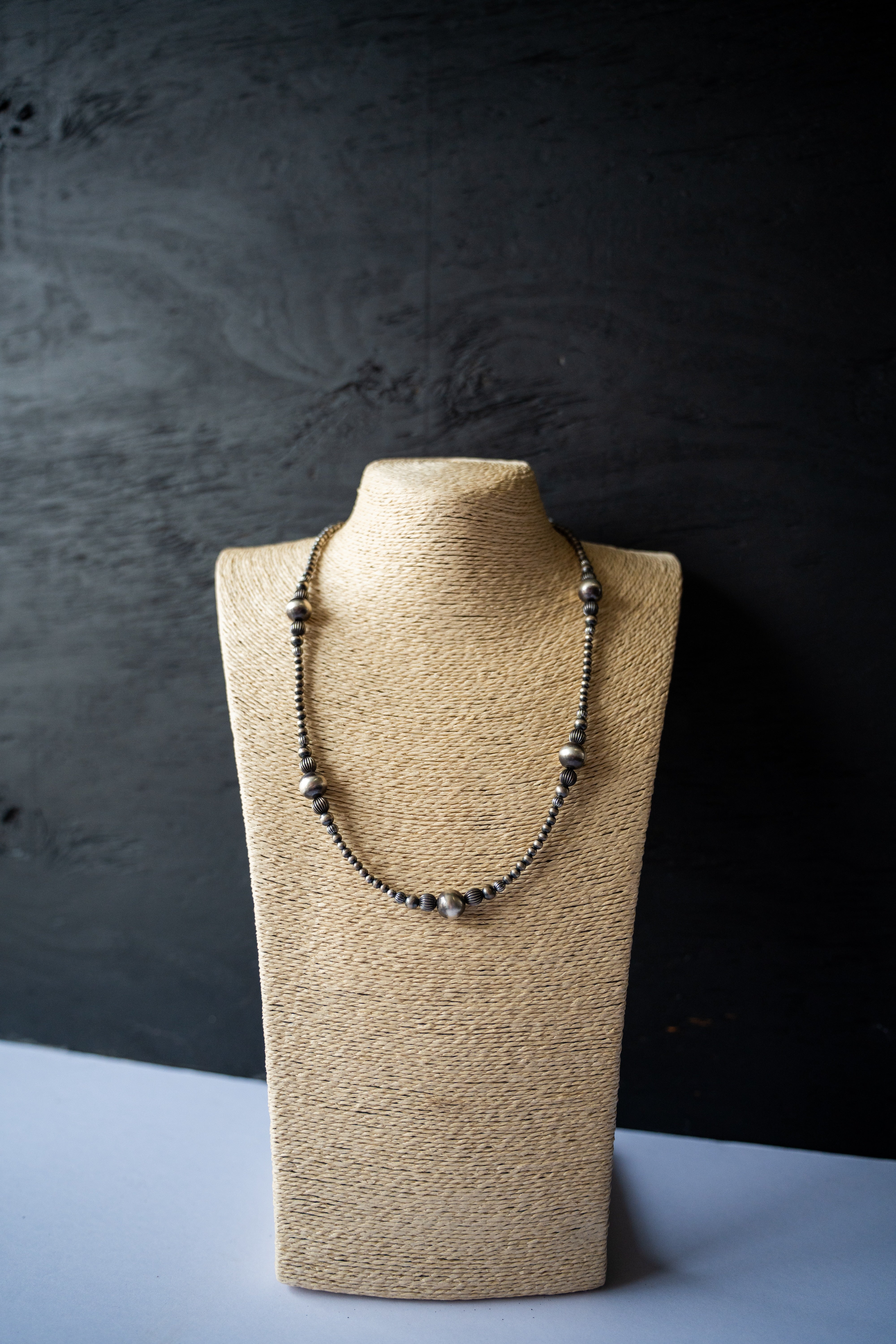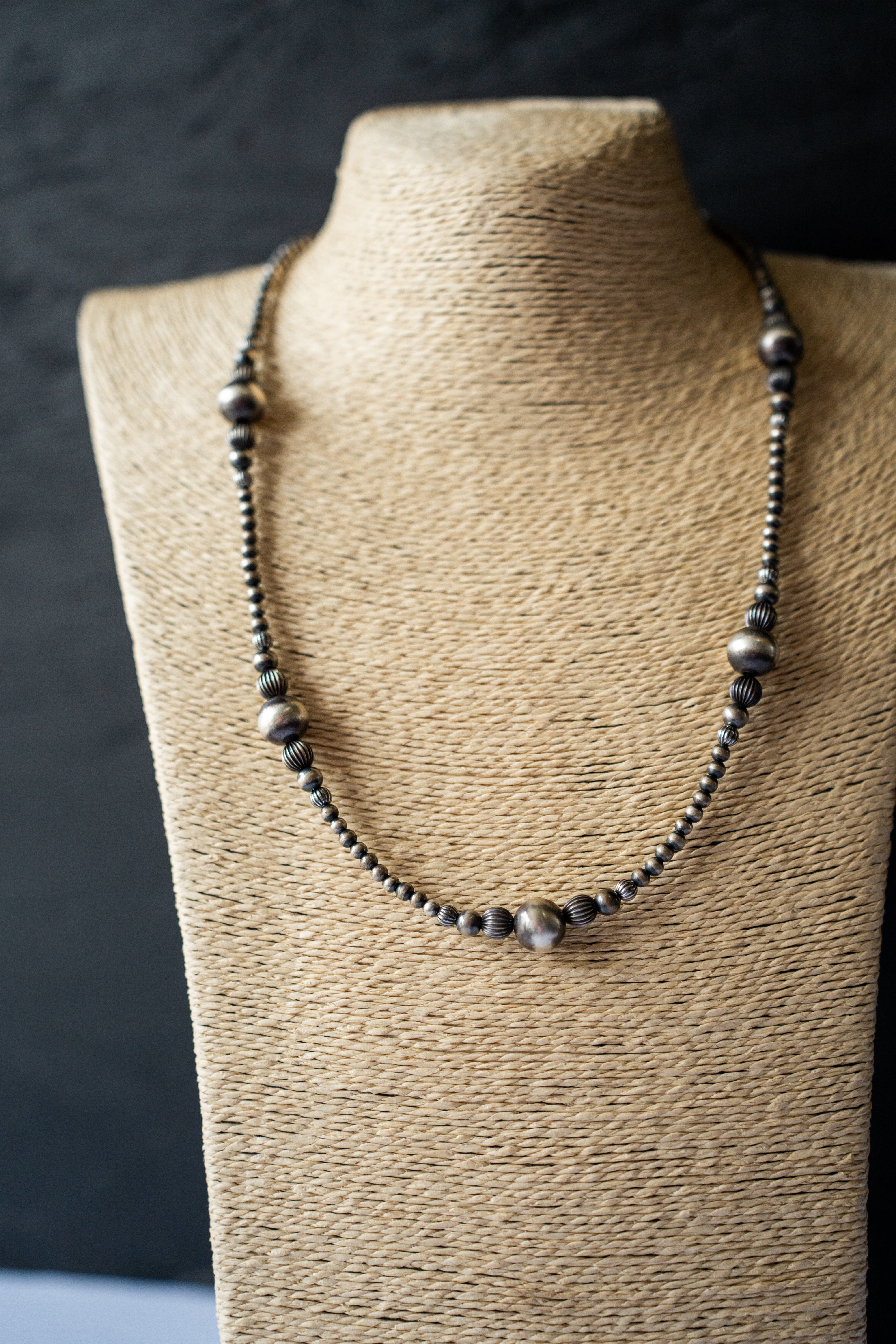 Sterling silver navajo pearl variated necklace. 20-23" in length. Third necklace down in stack.
