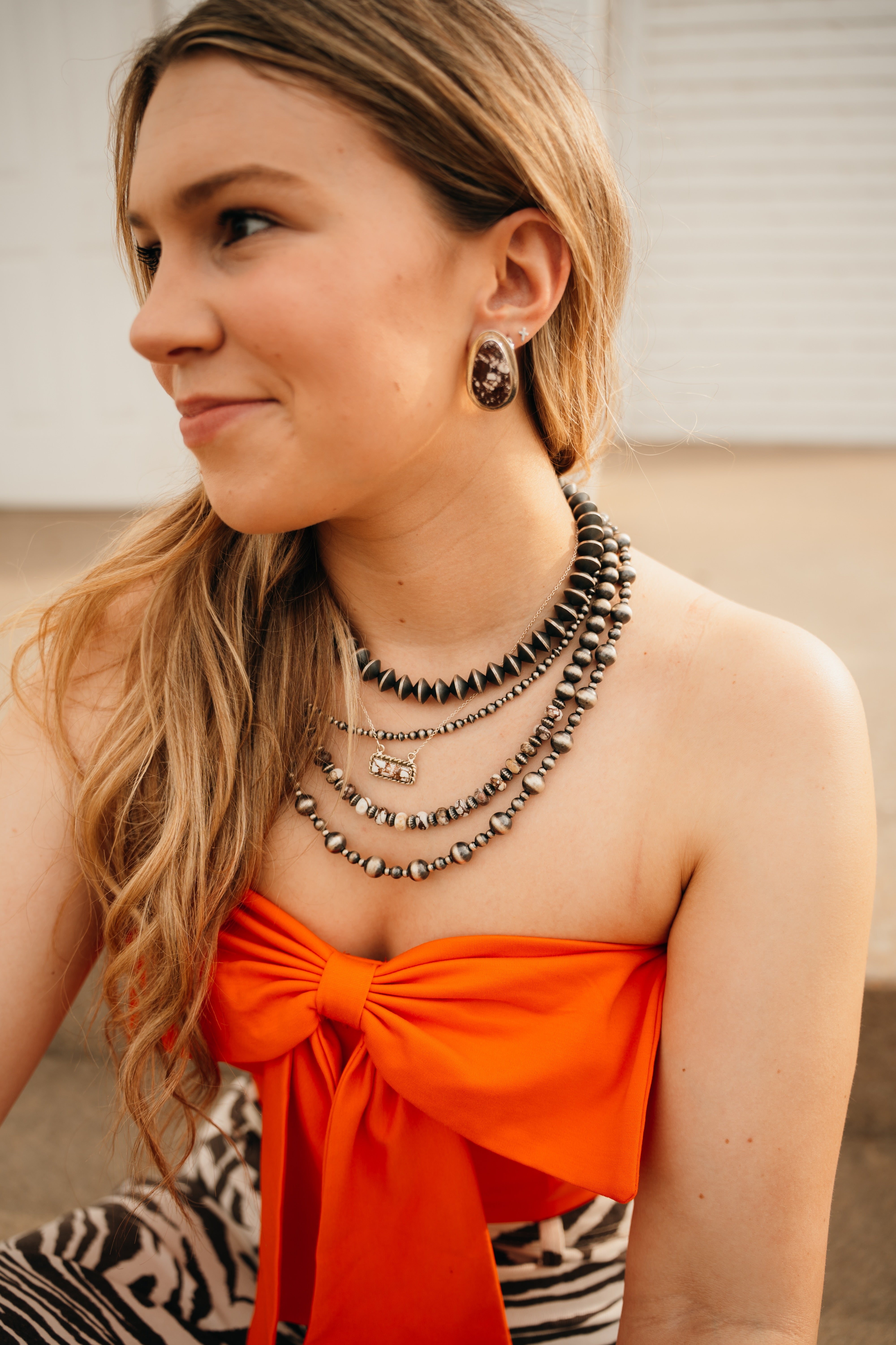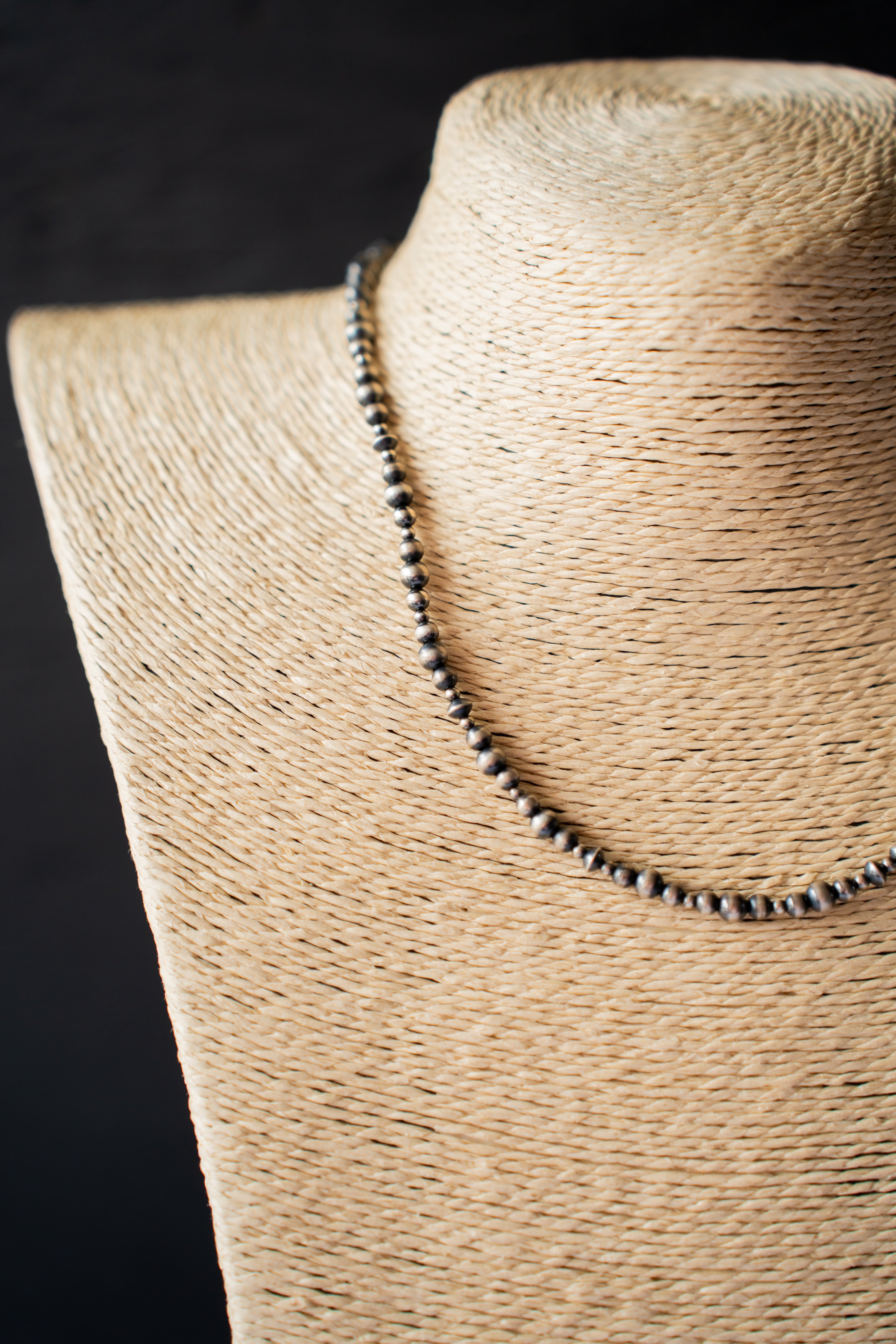Sterling silver navajo pearl and saucer variated necklace. 17-20" in length. Second necklace down in stacks.