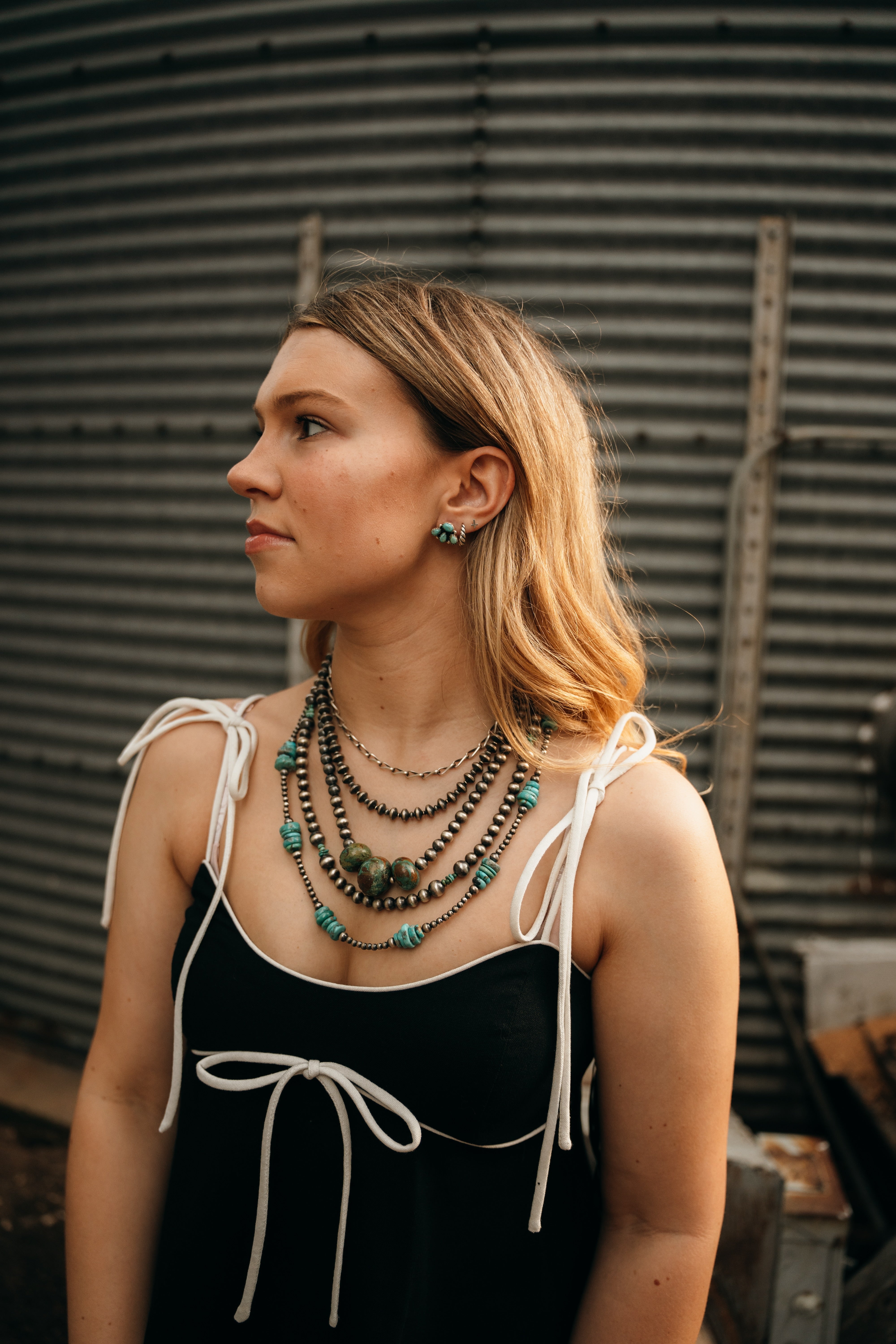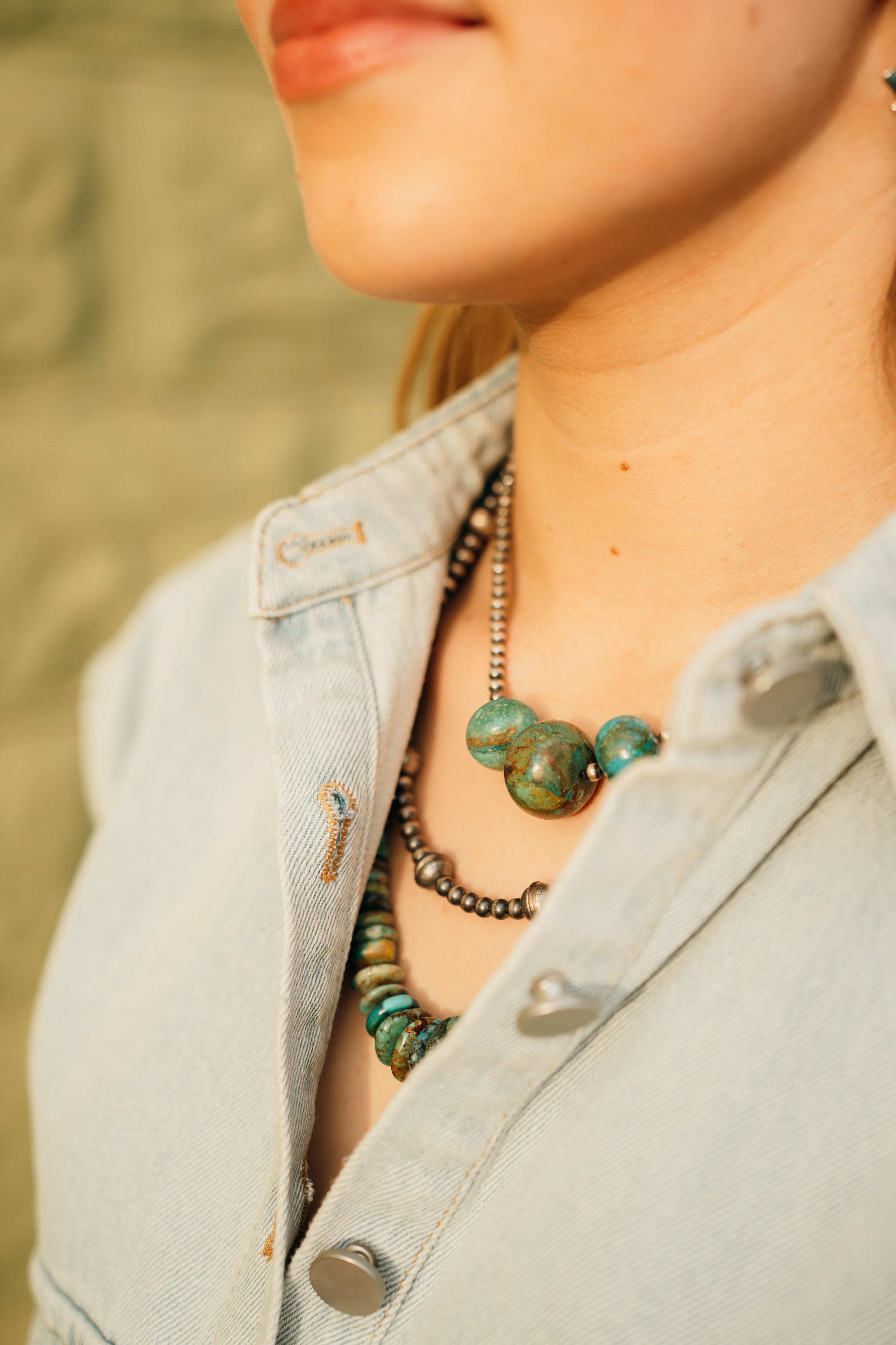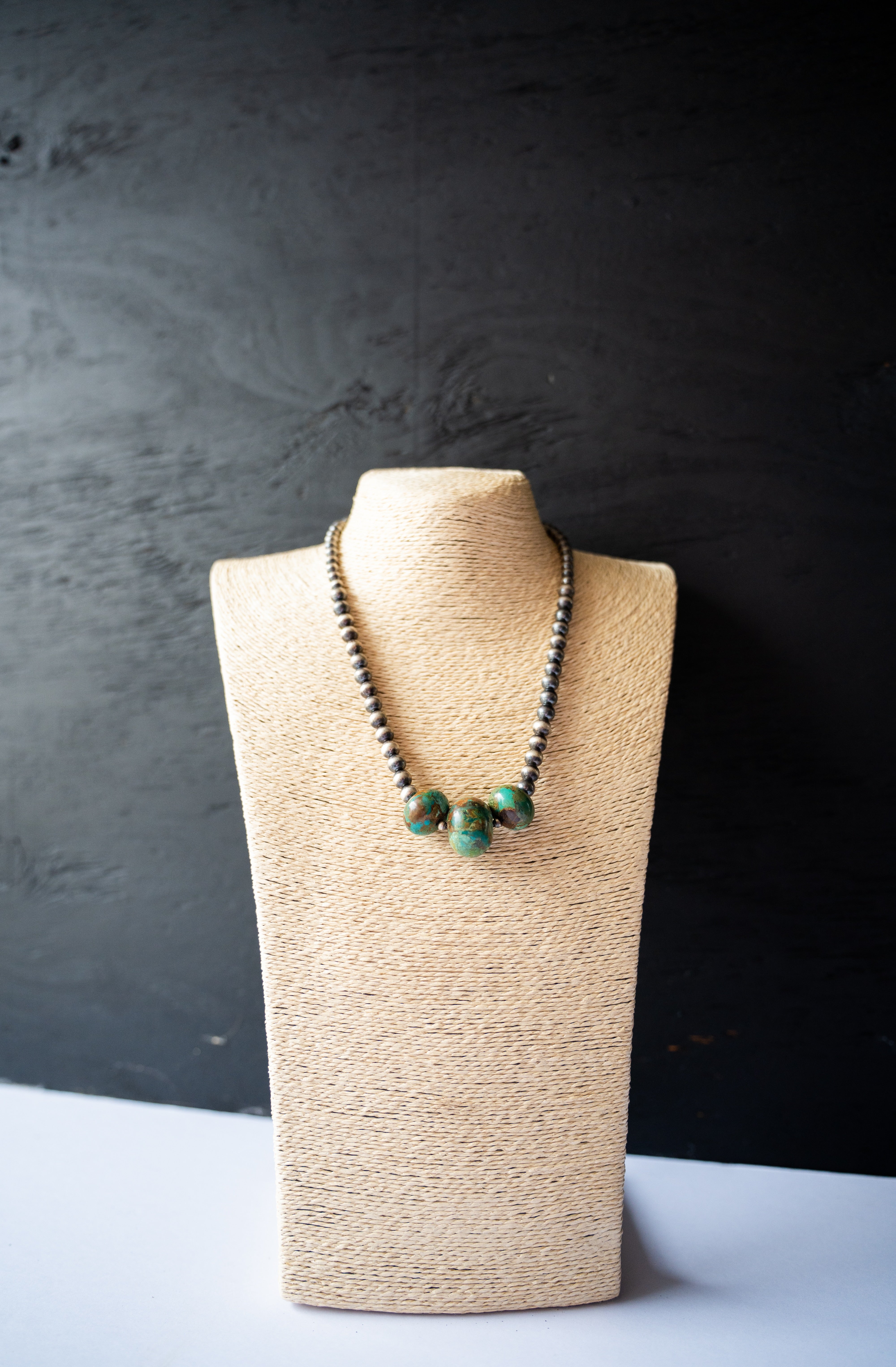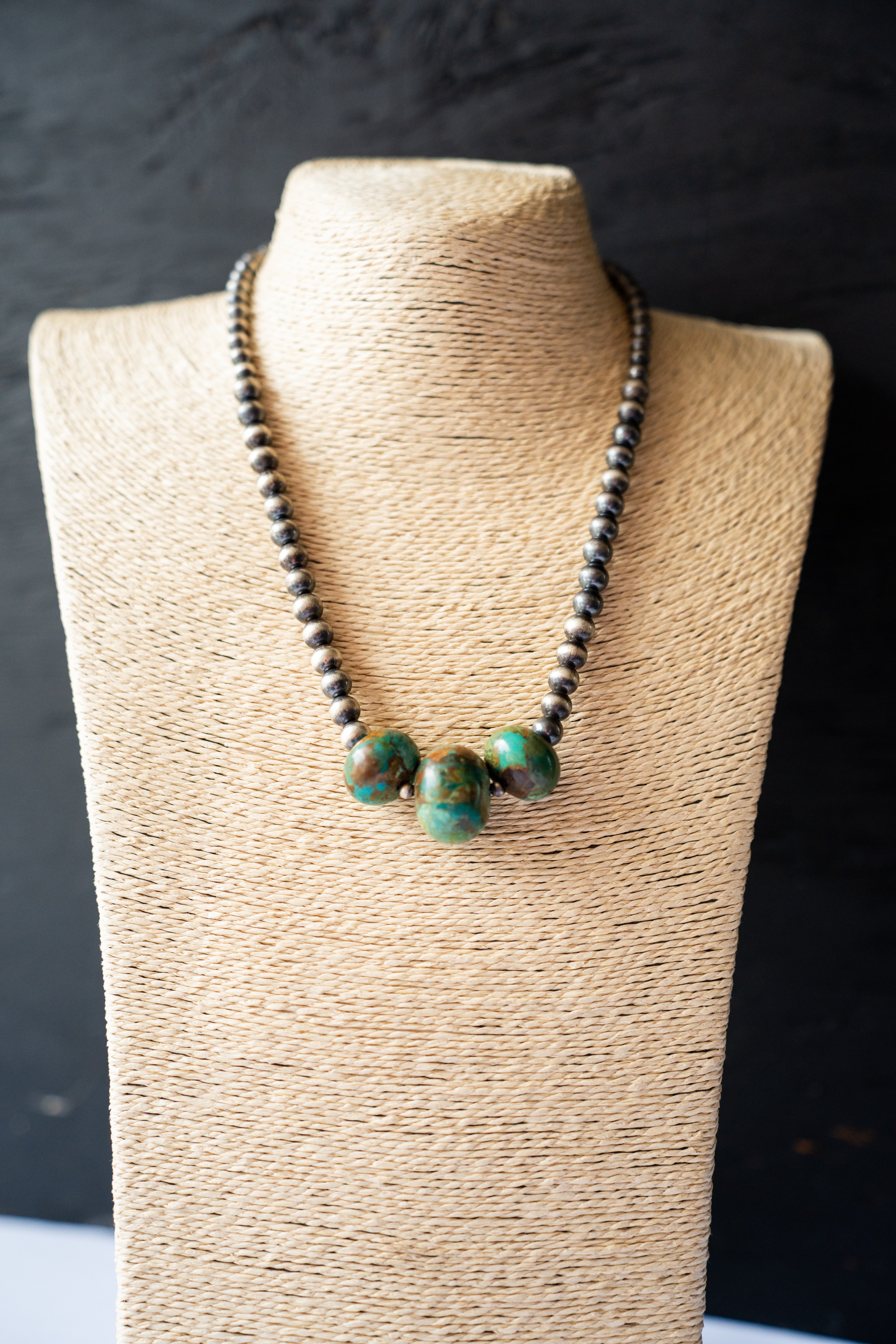 Navajo pearl and kingman turquoise necklace. Offered in various options and lengths.