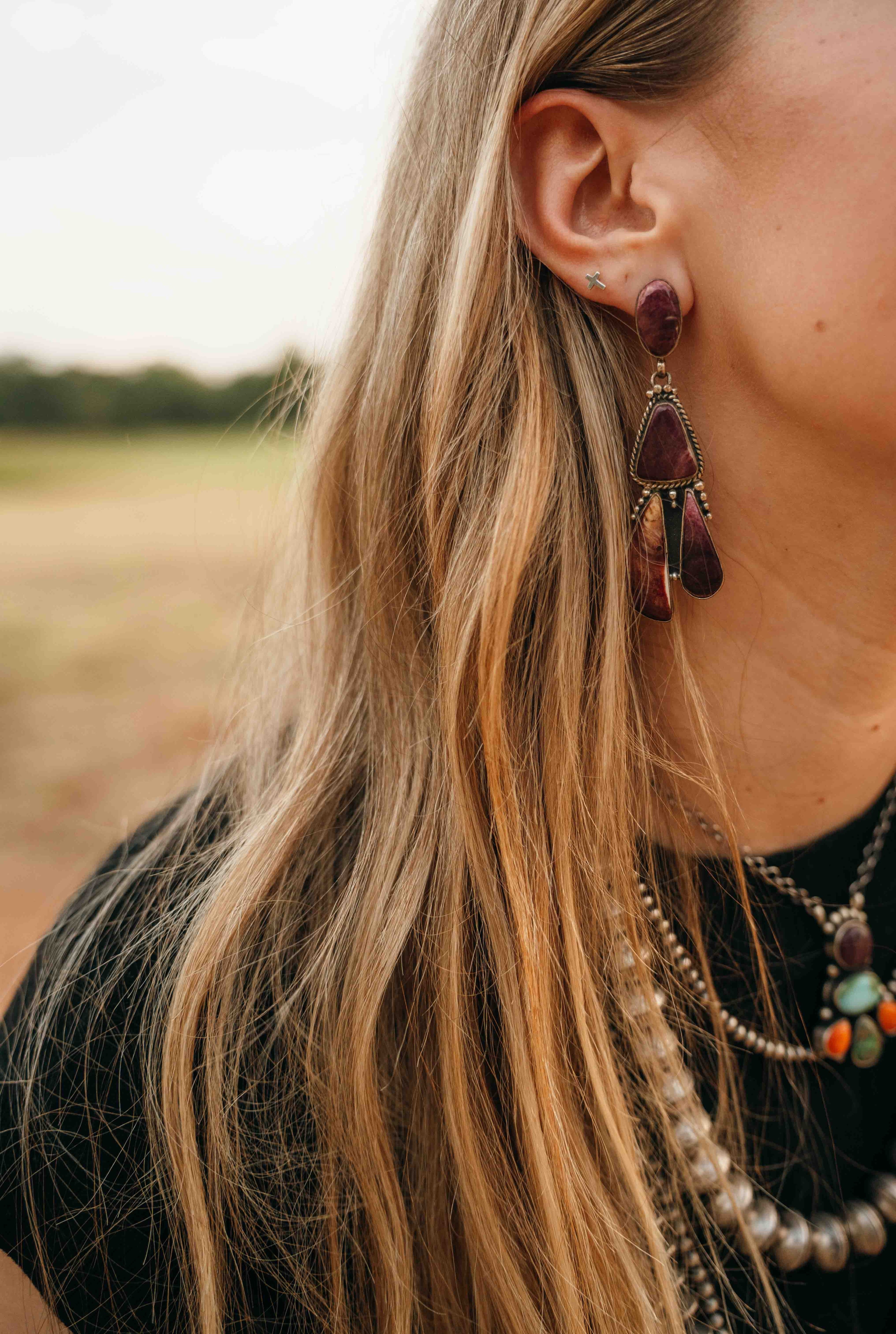 Purple spiny oyster cluster earrings. Stamped sterling silver and by P Yazzie.