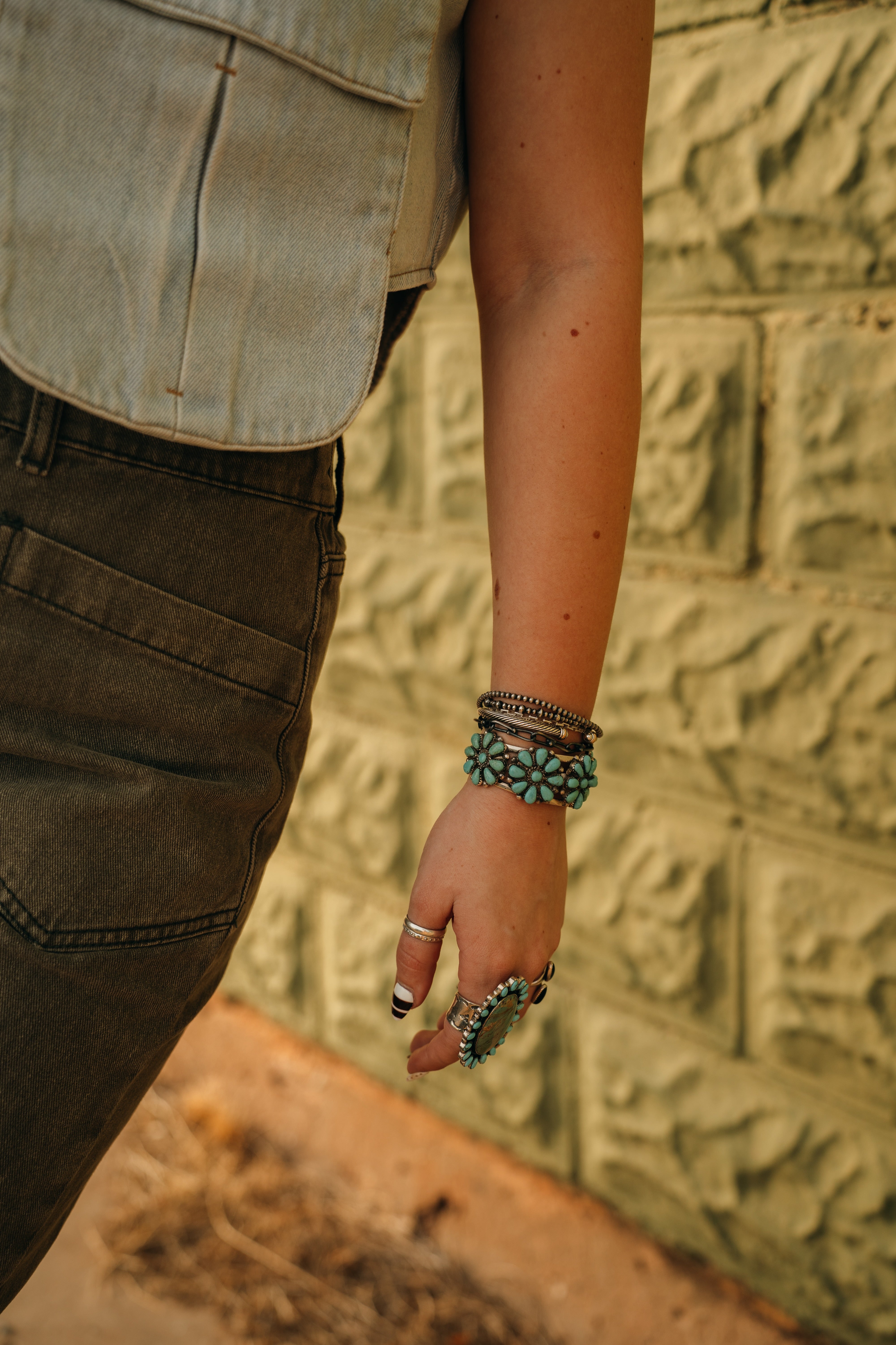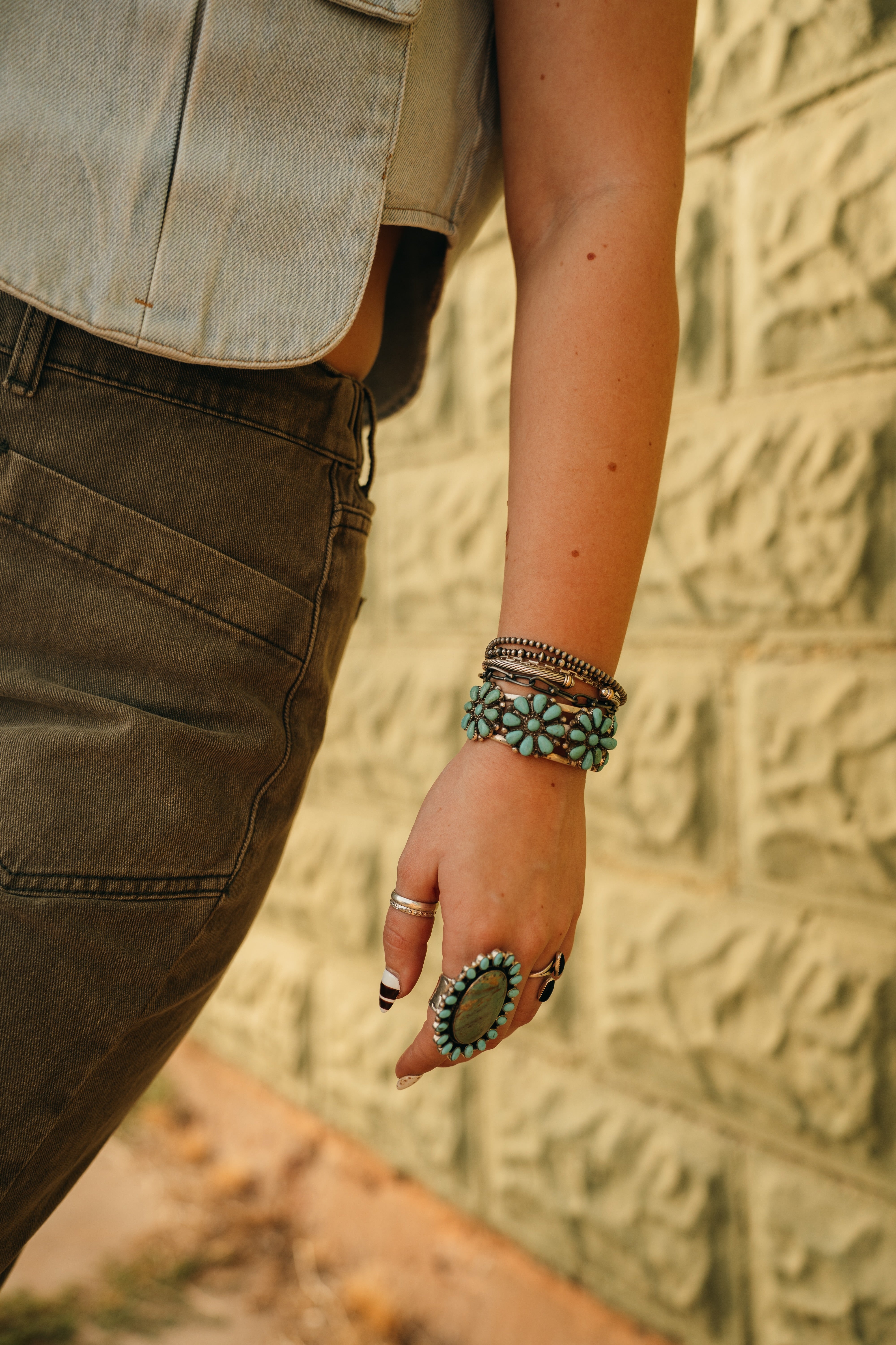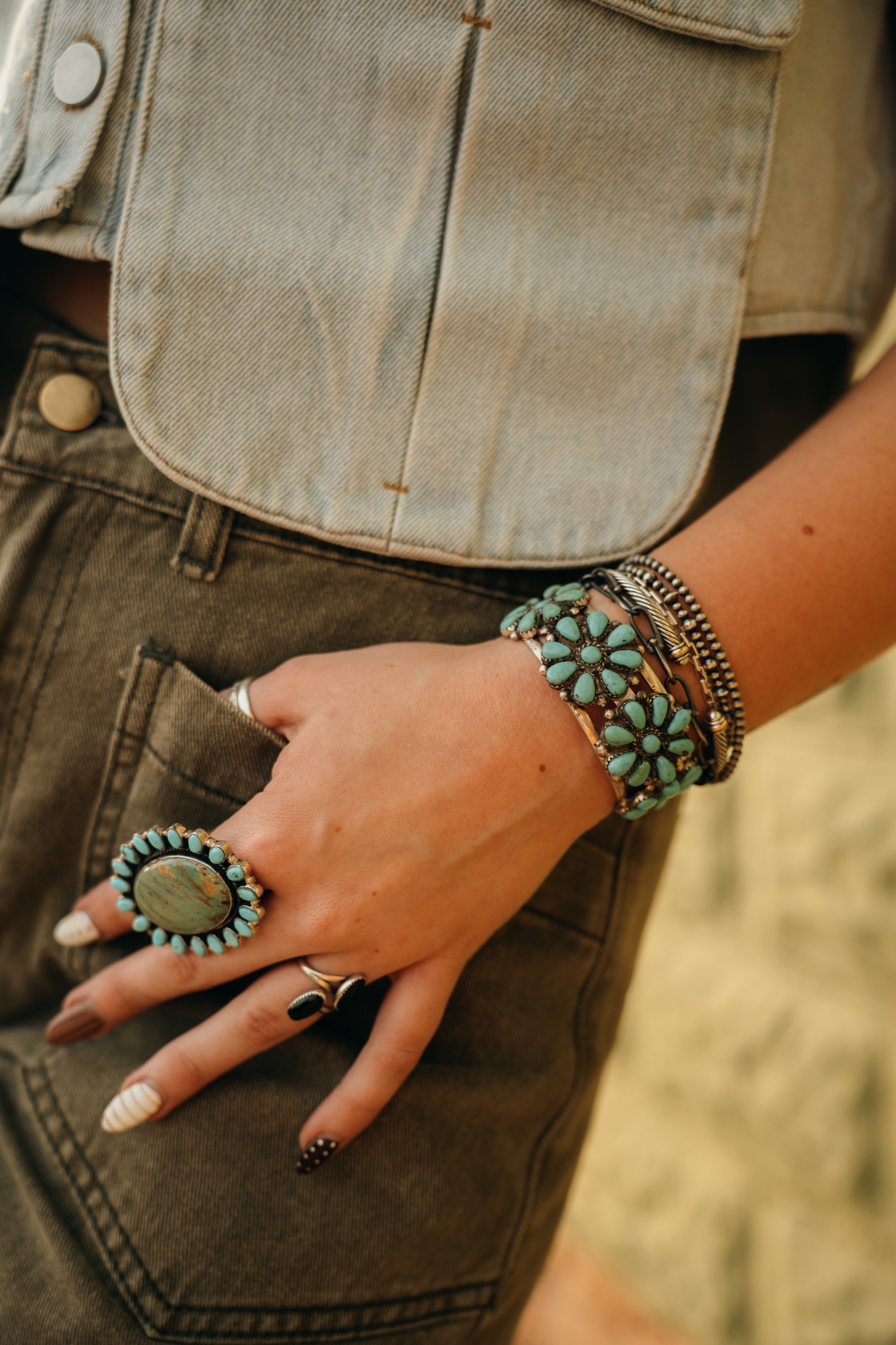 Sterling Silver and turquoise cluster cuff.