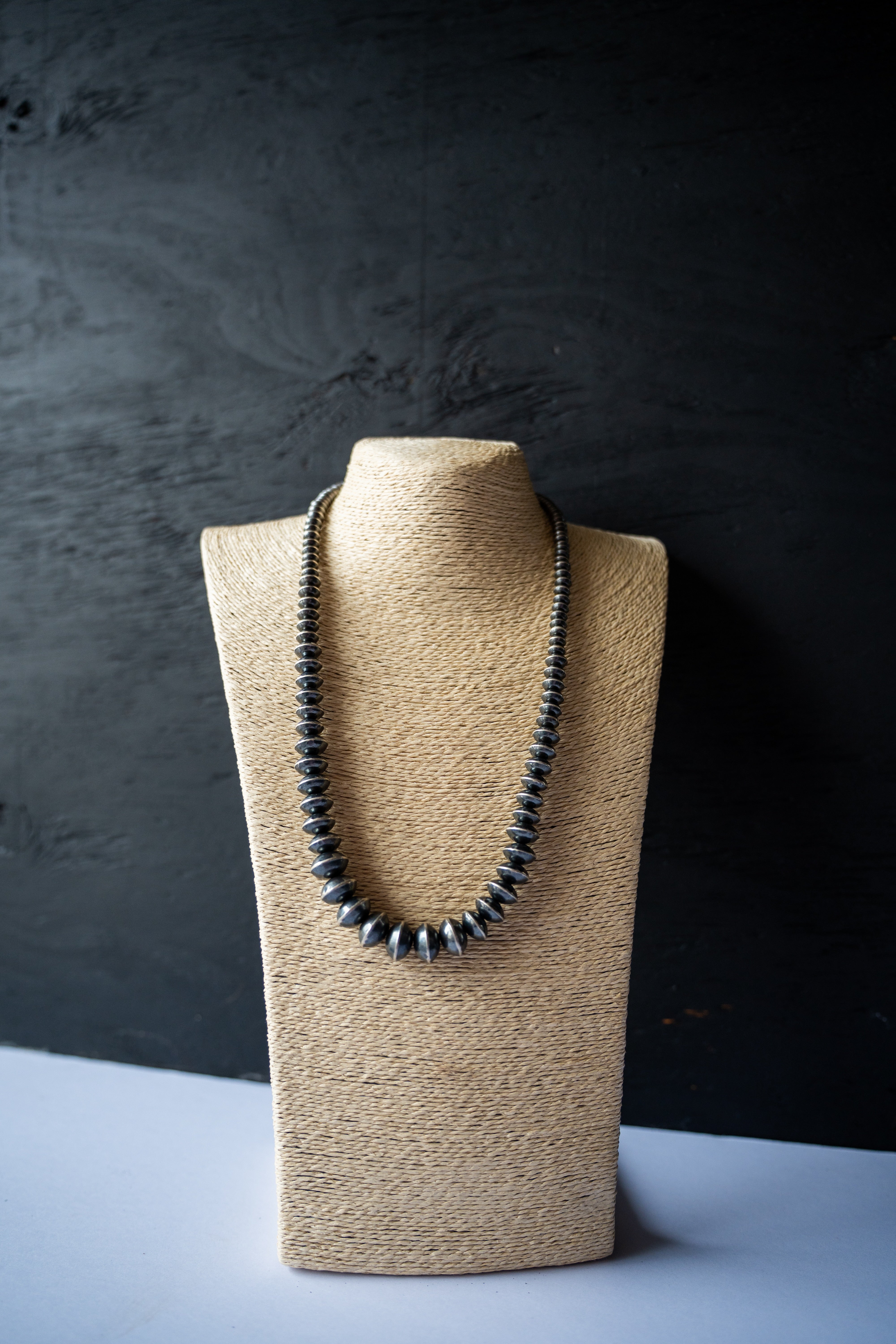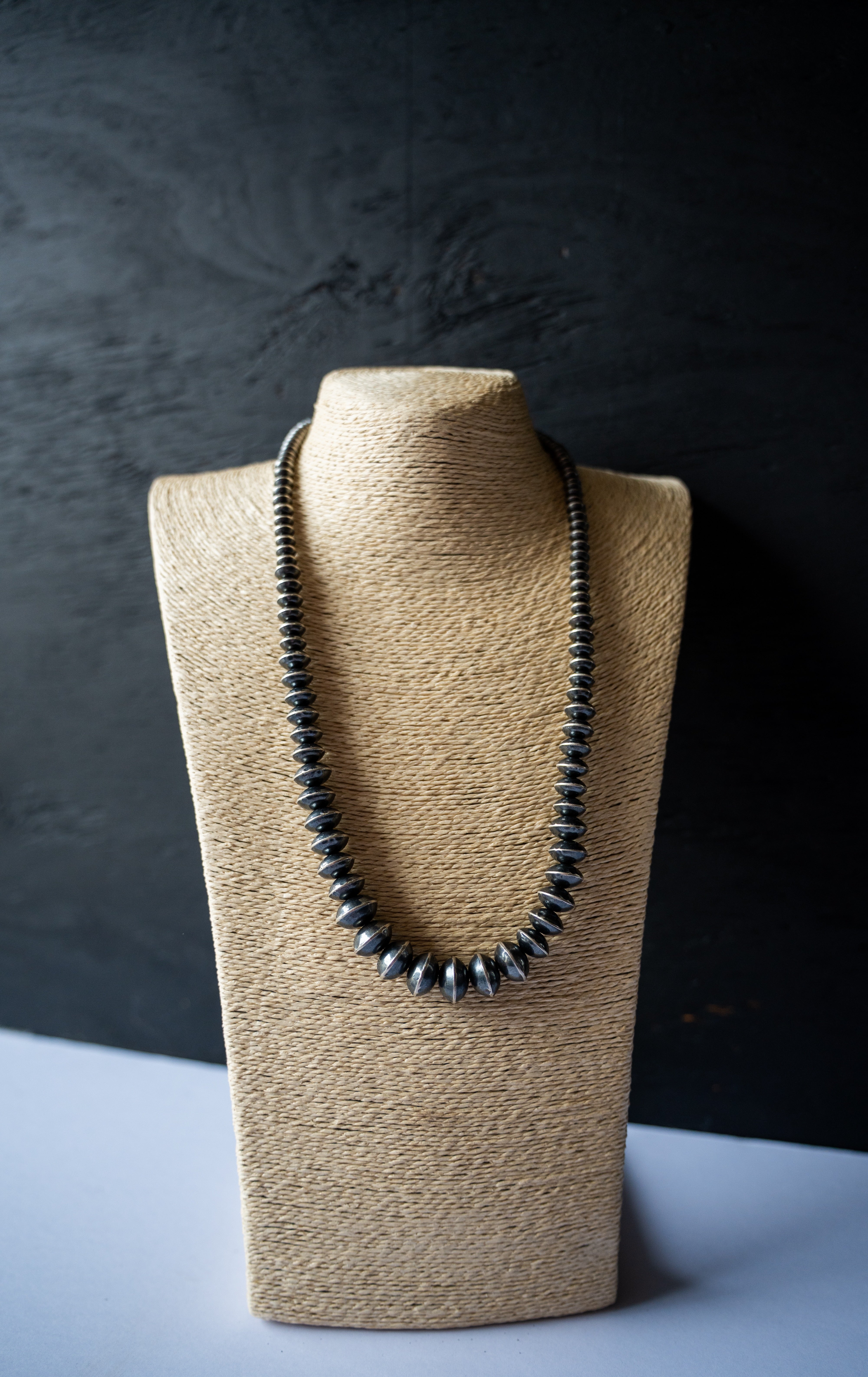 Graduated navajo pearl handmade saucer bead necklace. 25-27" in length. Fifth necklace down in stack